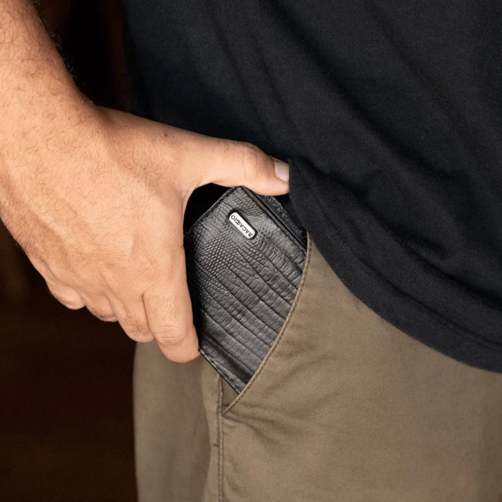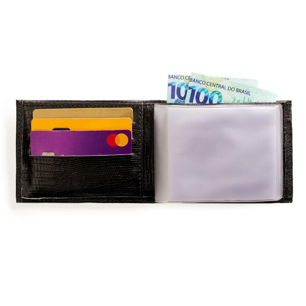 Carteira Masculina de Couro Lezard Preto