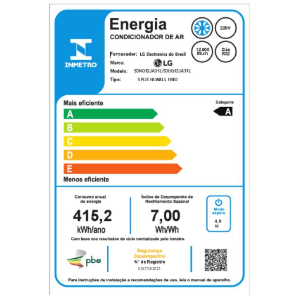 Ar?Condicionado LG DUAL Inverter AI Voice 12.000 BTUs Frio – Economia, Silêncio e Controle Inteligente com Comandos de VozO Ar?Condicionado Split LG DUAL Inverter AI Voice 12.000 BTUs Frio 220V (S3?Q12JA31L) oferece climatização rápida, operação silenciosa e recursos de automação avançada, sendo ideal para ambientes residenciais e comerciais de pequeno e médio porte. Com a tecnologia DUAL Inverter, o aparelho mantém a temperatura estável, reduz oscilações e garante menor consumo de energia, proporcionando classificação energética A e desempenho superior no uso diário.O sistema AI Voice, aliado ao Wi?Fi integrado, permite controlar o ar?condicionado diretamente pelo smartphone ou até por comandos de voz, tornando o uso mais simples, moderno e prático. Além disso, a função inteligente adapta o funcionamento conforme hábitos do usuário, entregando ainda mais conforto.O gás refrigerante R?32 aumenta a eficiência e reduz o impacto ambiental, enquanto a serpentina de cobre reforça a durabilidade e melhora a troca térmica, garantindo maior resistência à corrosão e vida útil prolongada do equipamento.A LG combina tecnologia, baixo ruído e economia para entregar um ar?condicionado completo e confiável, perfeito para quem busca climatização eficiente e conectividade no dia a dia.Especificações técnicas:Marca: LG Modelo: S3-Q12JA31L Modelo da Evaporadora: S3NQ12JA31L.EB2GAM1Modelo da Condensadora: S3UQ12JA31L.EB2GAM1 Tecnologia: DUAL Inverter Ciclo: FrioCapacidade: 12000 BTUs Voltagem: 220VClassificação Energética: AConsumo de Energia: 415,2 kWh/anoVazão de Ar: 28 m³/minNível de Ruído: Condensadora - 53 dBGás Refrigerante: R-32Modos de Operação: Refrigerar, Ventilar, DesumidificarFunções: Turbo, Dormir, Timer, Eco, OscilaçãoConectividade Wi-Fi: InclusoRegistro INMETRO: 004733/2023 Material da Serpentina: CobreDesnível Máximo entre Unidades: 7 mConexões Ø (liquido/gás): 1/4" - 3/8"Comprimento Máximo da Linha: 15 mDimensões Evaporadora: 87,3 L x 30,8 A x 18,9 P cm Dimensões Condensadora: 71,7 L x 49,5 A x 23 P cmPeso Evaporadora: 8,9 Kg Peso Condensadora: 21,2 Kg Garantia: 12 meses
