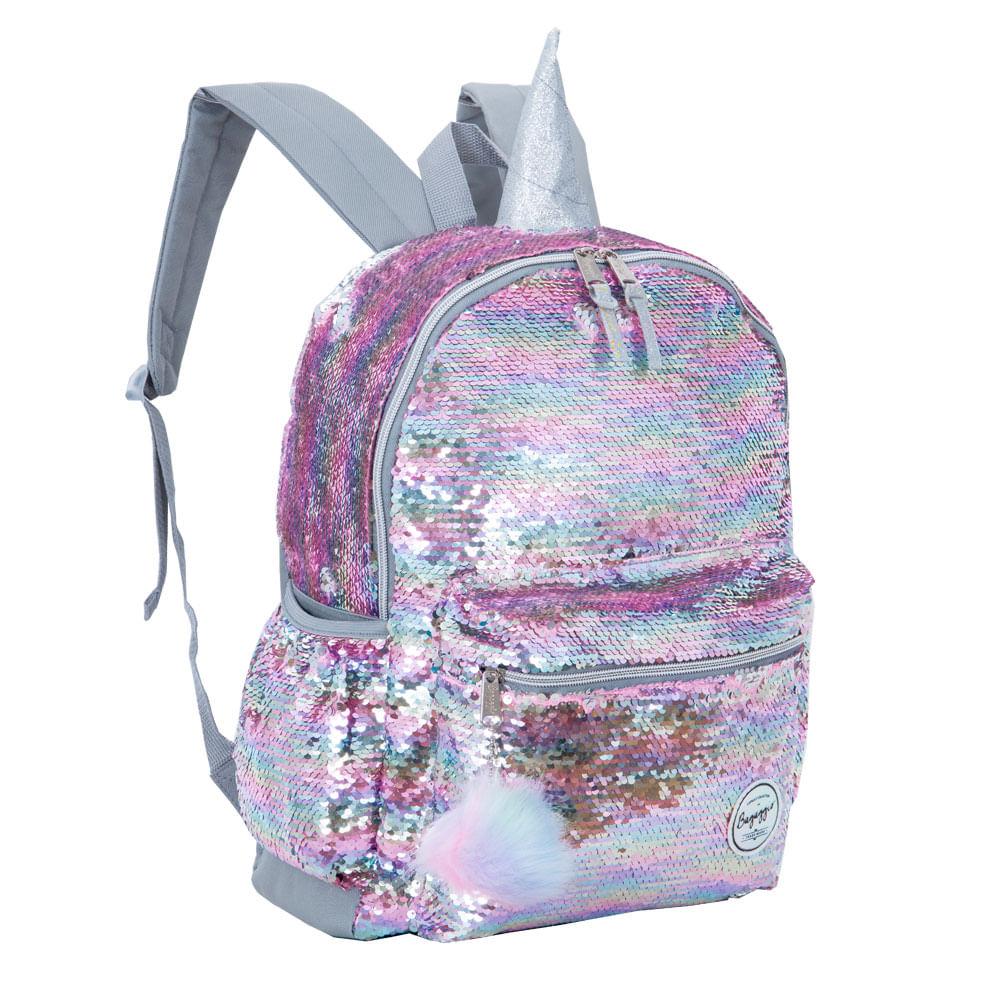 Se você procura uma mochila diferente, estilosa e espaçosa a Mochila rainbow é perfeita. Seu modelo é confeccionado em paetê dupla face rainbow e seu bolso frontal possui um Patch removível de letras sortidas, produzido em material holográfico para você personalizar sua mochila do seu jeito. Suas orelhas e chifres são confeccionados com material especial em paetê e glitter e para dar o toque final do glamour, a mochila vem com um lindo chaveiro pompom brilhoso rainbow. Possui um compartimento principal e um bolso frontal, ambos com fecho em zíper e dois bolsos laterais com elástico para armazenar garrafas. Marca: Bagaggio Parte Externa: - 1 Compartimento; - Fecho em zíper; - Puxadores personalizados; - Alça de mão; - Chaveiro Pompom; - Bolso frontal lateral. Parte Interna - Forro em nylon; - Amplo espaço interno.