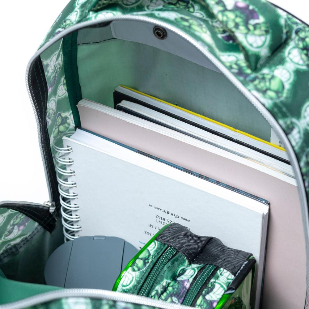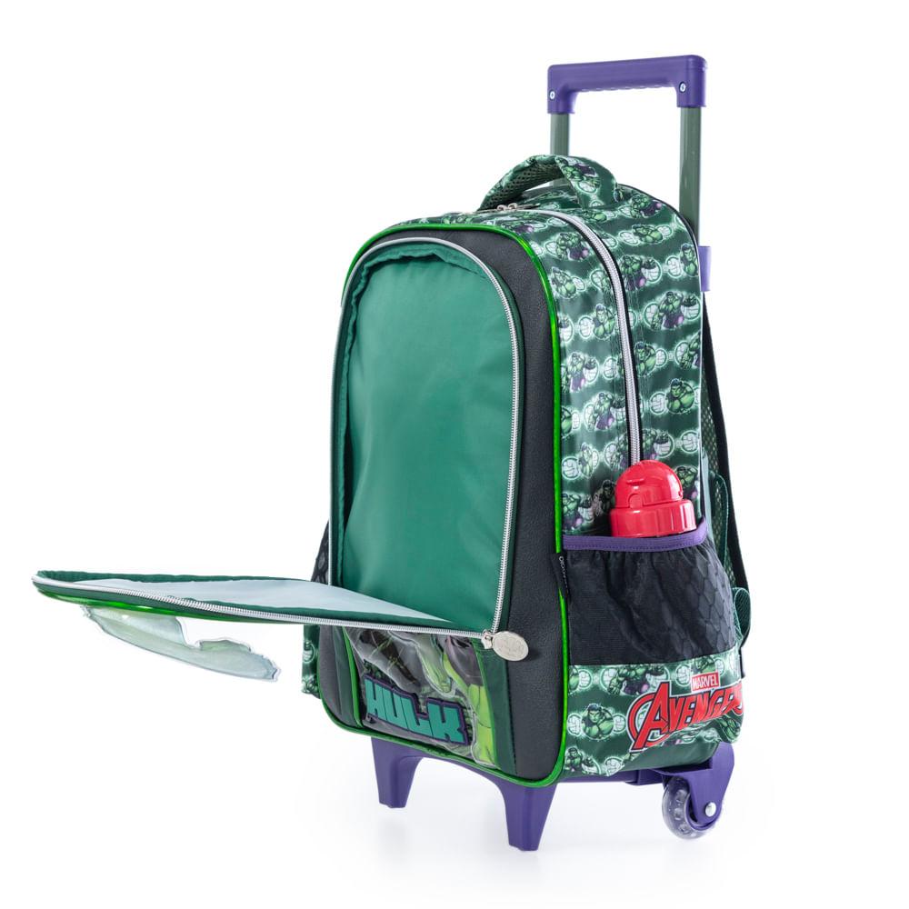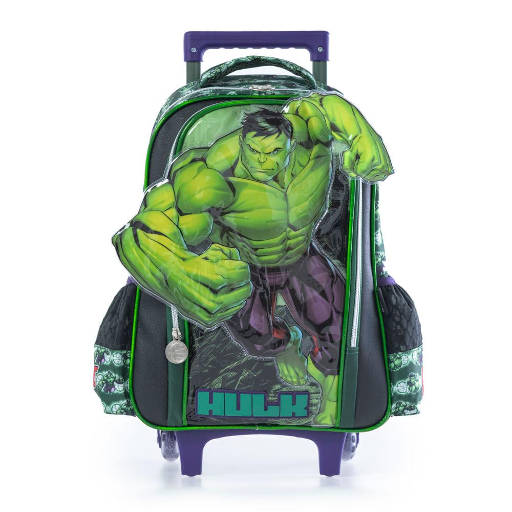 Mochila Escolar Masculina Marvel Hulk de Rodinha Verde