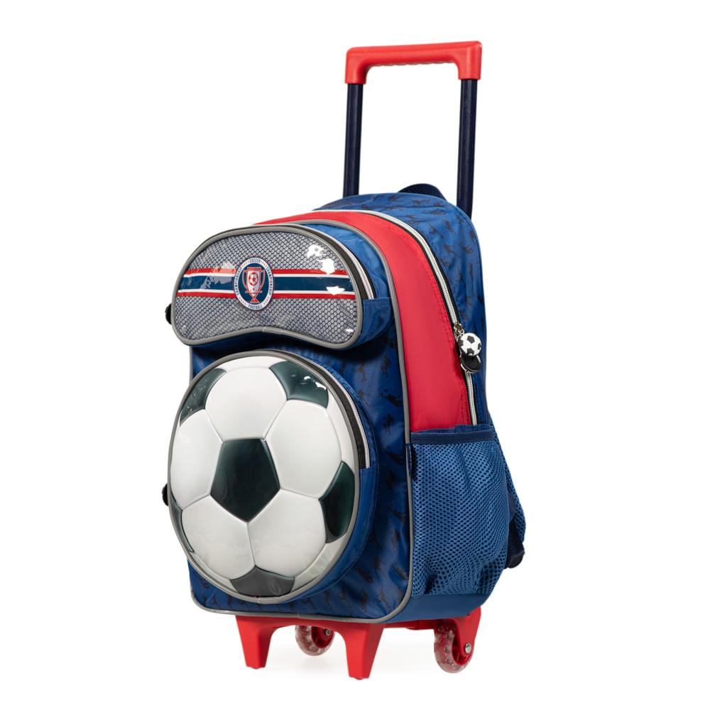 Mochila de Rodinha Infantil Masculina Futebol Azul