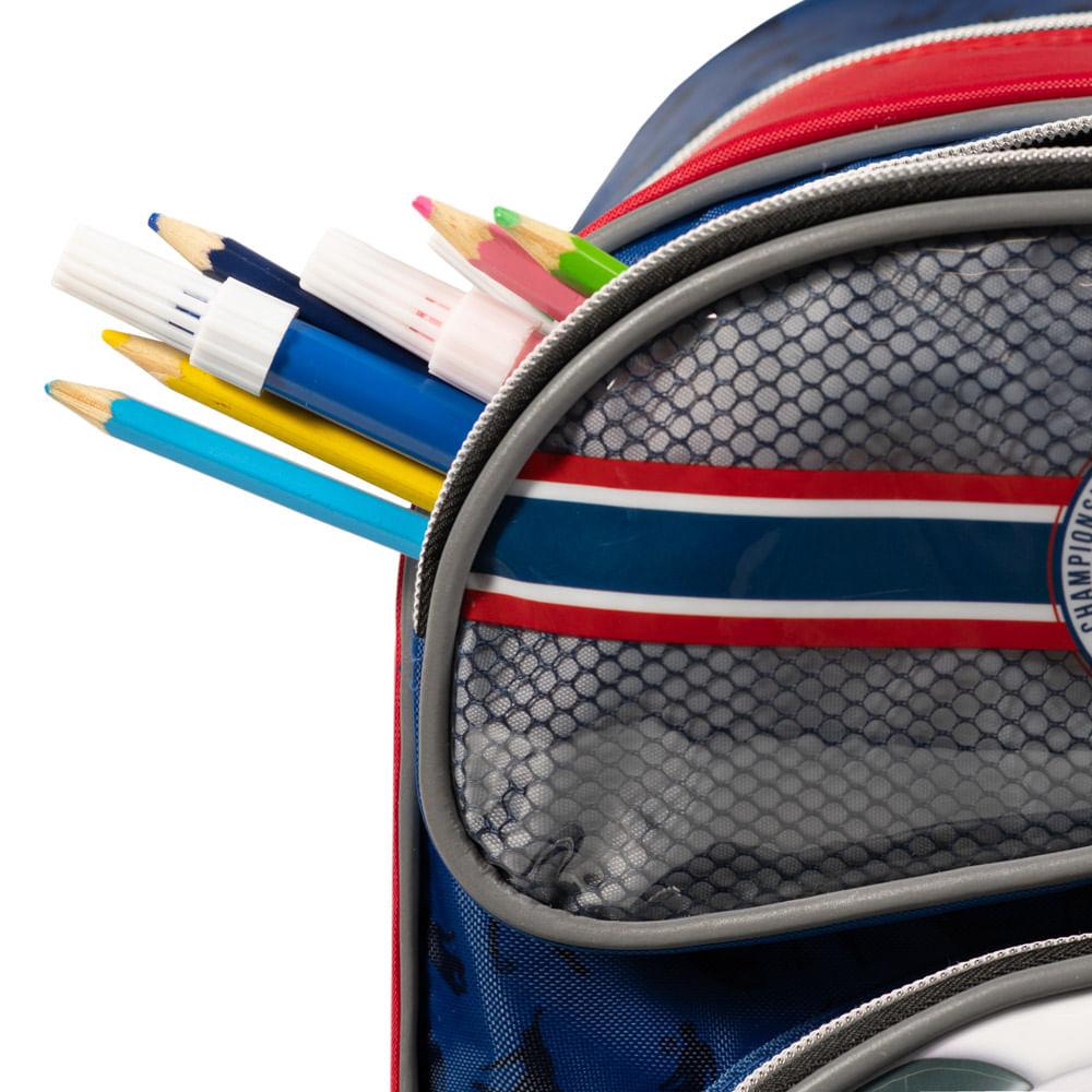 Mochila de Rodinha Infantil Masculina Futebol Azul A Mochila Futebol com 2 rodas 25k é perfeita para quem vive o esporte e quer praticidade para o dia a dia. Com detalhes inspirados no futebol e compartimentos funcionais, ela é ideal para transportar tudo o que você precisa, seja para a escola ou para o treino. Tamanhos disponível: 41 x 30 x 15 cm Principais Atributos - Design Esportivo e Funcional Com um visual esportivo, a mochila traz uma estampa moderna, combinando estilo e funcionalidade. Os detalhes fazem referência ao universo do futebol, ideal para quem ama o esporte. - Bolso frontal em formato de bola de futebol Um dos grandes destaques da mochila é o compartimento frontal, reproduzindo o design de uma bola de futebol. Perfeito para quem é fã do esporte. - Rodinhas Equipada com duas rodas, facilita o transporte, proporcionando mais mobilidade e conforto ao usuário. - Diversos Compartimentos Além do compartimento para com design de bola, a mochila conta com diversos bolsos, incluindo um bolso frontal com zíper para pequenos itens e dois bolsos laterais, ótimos para garrafas de água ou objetos de acesso rápido. - Alças Acolchoadas e Ajustáveis As alças acolchoadas garantem conforto durante o uso, e são ajustáveis para se adaptar a qualquer altura, oferecendo maior praticidade e conforto no transporte. Bagaggio Responde - A mochila tem espaço suficiente para os materiais escolares? Sim! A mochila conta com um amplo espaço interno que acomoda cadernos, livros e outros materiais escolares de forma organizada. - A mochila é resistente para o uso diário? Com certeza. Fabricada em material 80% POLIESTER + 20% PVC, materiais resistentes e de alta durabilidade, a mochila é perfeita para o uso diário, seja para a escola, treinos ou outras atividades, garantindo que seus itens fiquem sempre protegidos.
