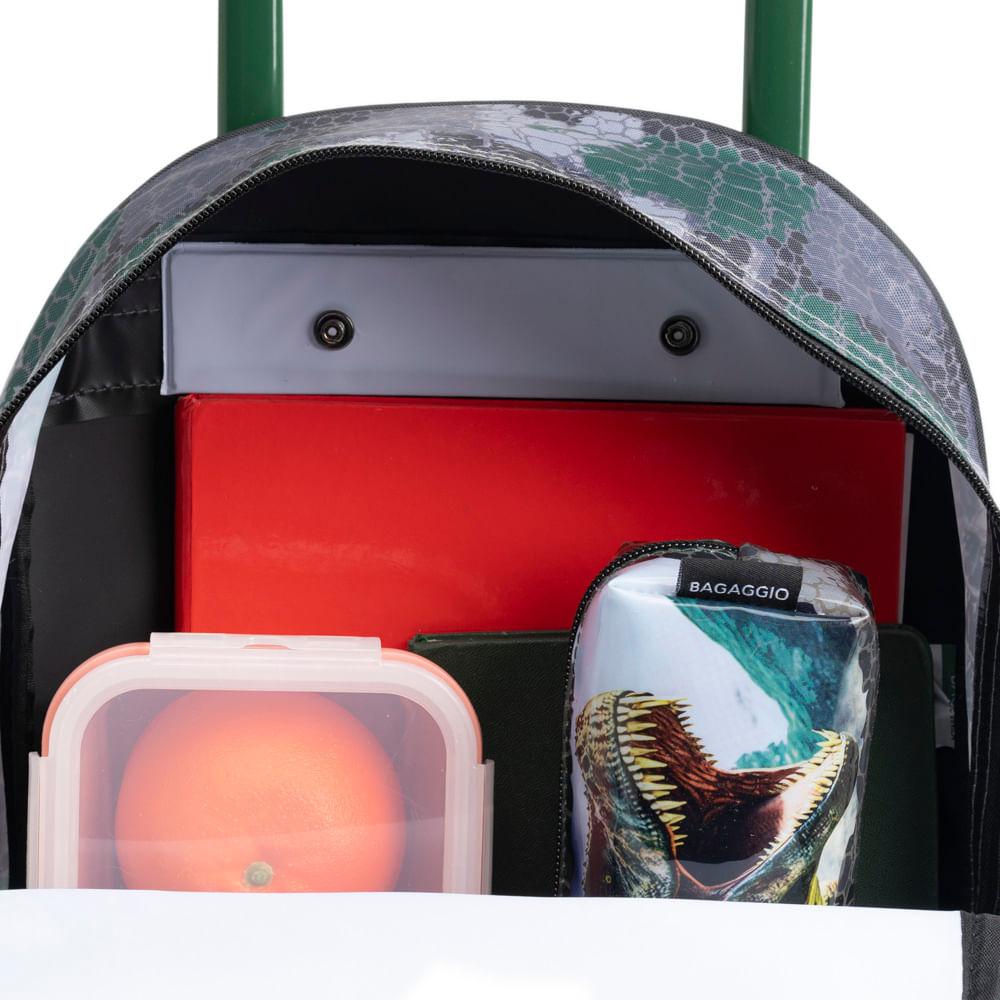 Mochila Rodinha Infantil Masculina Dinossauro Verde Escuro