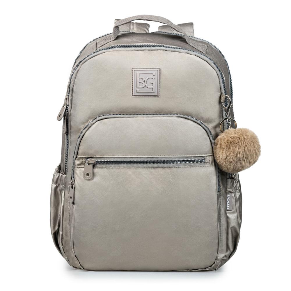 Mochila Escolar Juvenil Feminina Perolada Cinza