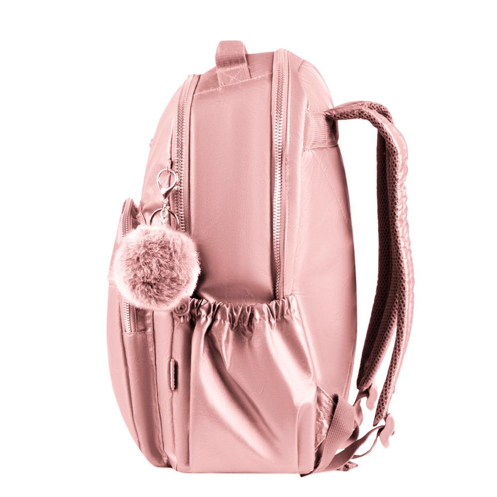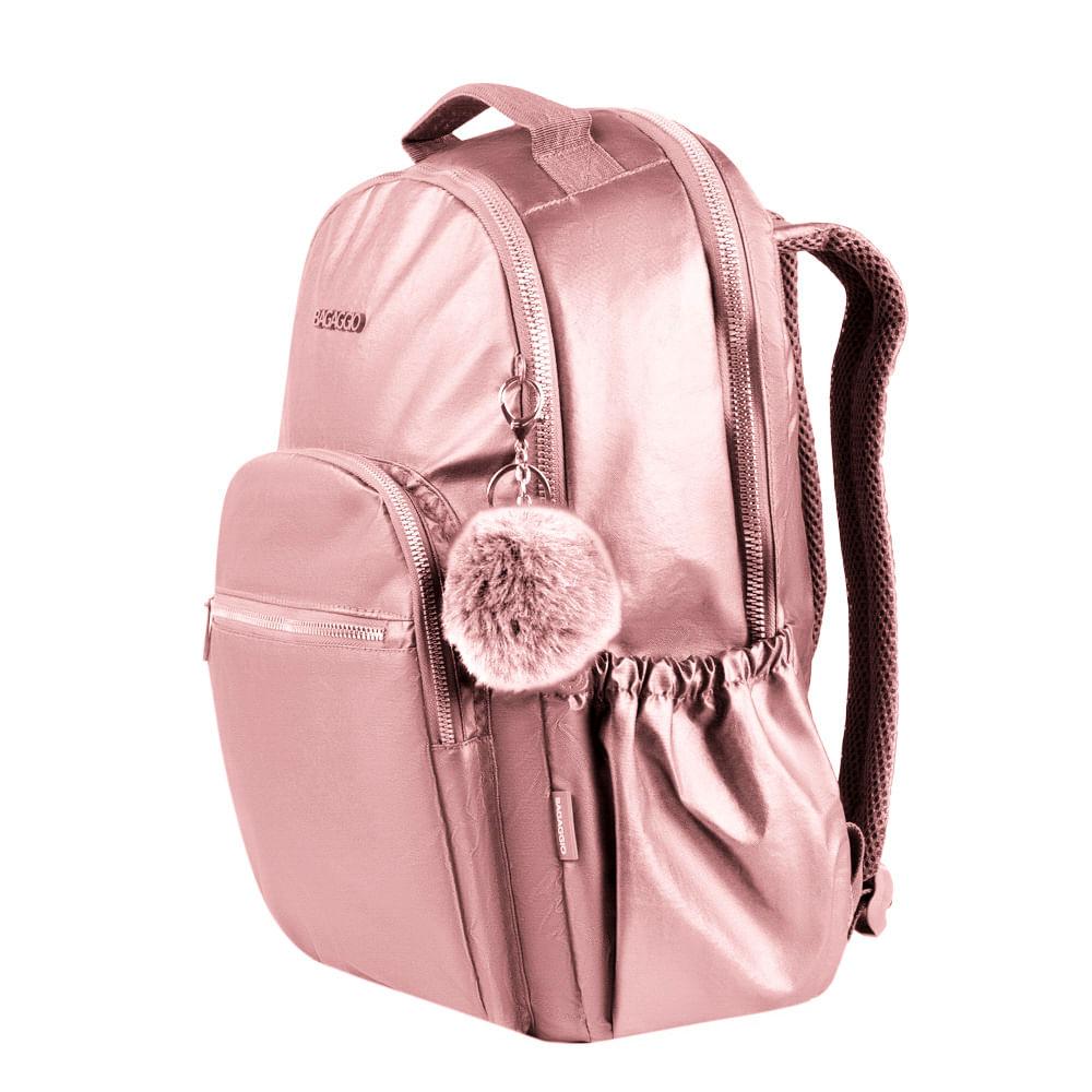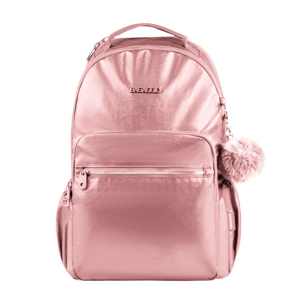 A Mochila Feminina Perolada Rosa Bagaggio, da linha Perolada, é uma mochila pensada para a rotina, com visual mais arrumado e estrutura funcional. Produzida em poliéster, ela se destaca pelo tecido perolado com brilho discreto, que traz um acabamento diferenciado sem exageros. O modelo conta com 2 compartimentos com zíper, 2 bolsos frontais, bolso lateral porta-garrafa e alças de costas acolchoadas, além de acompanhar chaveiro pompom, um detalhe decorativo que complementa o design.Organização e espaço internoCom dois compartimentos principais, fica mais fácil separar itens de uso diário, materiais, nécessaire e acessórios, evitando bagunça ao longo do dia. Essa divisão ajuda a manter tudo mais visível e acessível, sem precisar tirar tudo da mochila para encontrar o que precisa.Importante: os objetos exibidos nas imagens são meramente ilustrativos e não acompanham o produto.Bolsos externos para acesso rápidoOs 2 bolsos frontais com zíper são ideais para itens que precisam estar sempre à mão, como celular, carteira, chaves, fones e carregador. Já o bolso lateral porta-garrafa permite transportar sua bebida com mais praticidade, liberando espaço no interior da mochila e facilitando o uso no dia a dia.Conforto no uso diárioAs alças de costas acolchoadas ajudam a distribuir melhor o peso, oferecendo mais conforto em rotinas mais longas, como escola, faculdade, cursos ou deslocamentos urbanos. A alça de mão superior facilita pegar, apoiar ou transportar rapidamente em situações pontuais, como transporte público, carro ou armário.FAQEssa mochila tem quantos compartimentos?Ela possui 2 compartimentos com zíper, ideais para organizar itens pessoais e materiais do dia a dia.Tem bolso para garrafa?Sim. O modelo conta com bolso lateral porta-garrafa.Os itens mostrados nas fotos acompanham a mochila?Não. Os objetos exibidos nas imagens são apenas ilustrativos e não acompanham o produto.Ela é confortável para usar por várias horas?Sim. As alças acolchoadas ajudam no conforto e na melhor distribuição do peso.O chaveiro vem junto?Sim, a mochila acompanha chaveiro pompom.Especificações: Material: PoliésterTamanho:43,2 x 31 x 14 CmPeso: Mochila: 0,520 KgCapacidade: 18,7Garantia: 90 diasFaixa etária: Juvenil (12+ anos)Outros atributos: - Dois bolsos frontais com zíper.- Chaveiro pompom.- Compartimento para notbook.