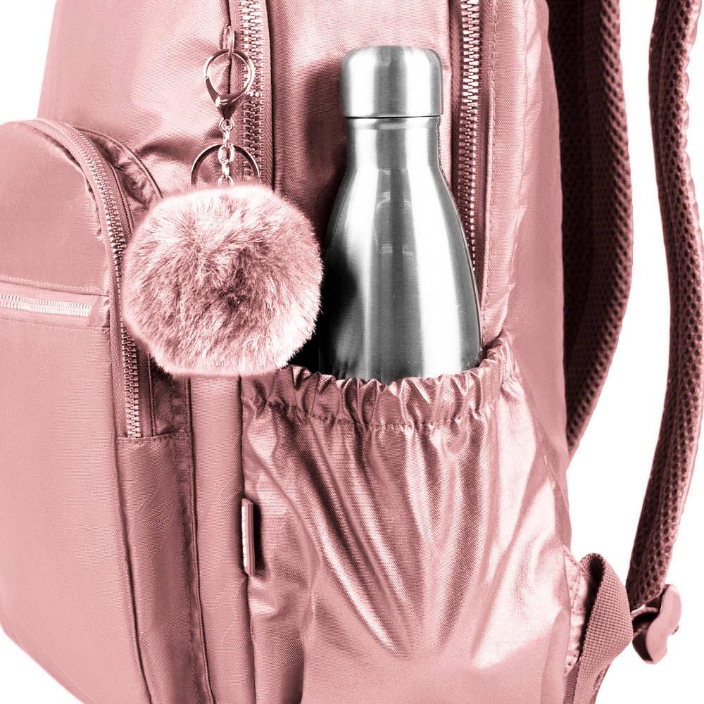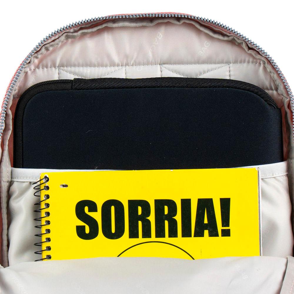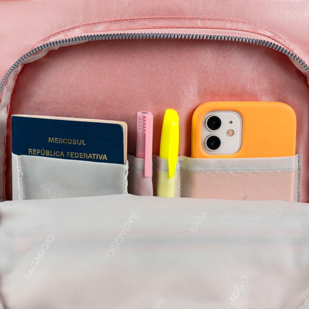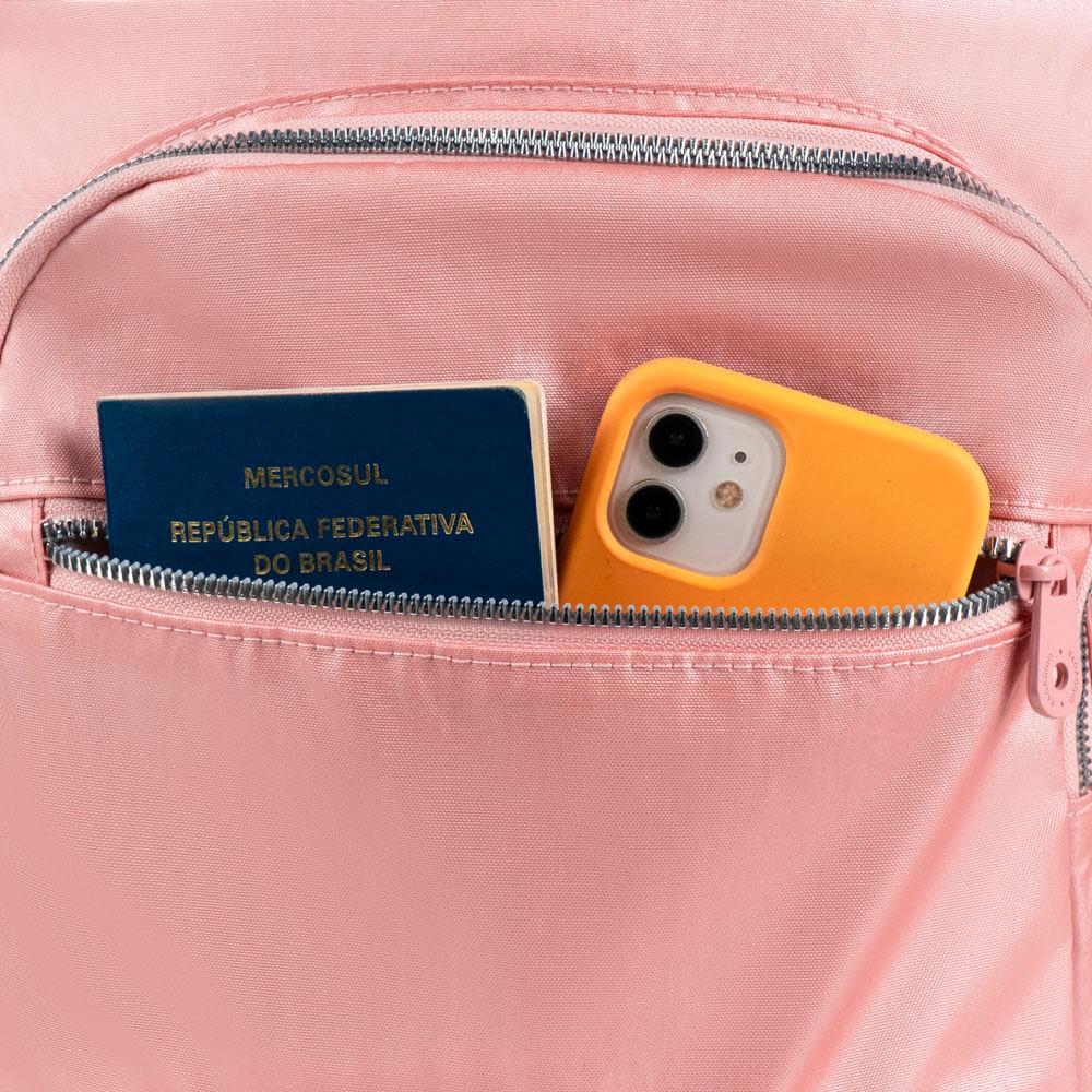 A Mochila Feminina Perolada Rosa Bagaggio, da linha Perolada, é uma mochila pensada para a rotina, com visual mais arrumado e estrutura funcional. Produzida em poliéster, ela se destaca pelo tecido perolado com brilho discreto, que traz um acabamento diferenciado sem exageros. O modelo conta com 2 compartimentos com zíper, 2 bolsos frontais, bolso lateral porta-garrafa e alças de costas acolchoadas, além de acompanhar chaveiro pompom, um detalhe decorativo que complementa o design.Organização e espaço internoCom dois compartimentos principais, fica mais fácil separar itens de uso diário, materiais, nécessaire e acessórios, evitando bagunça ao longo do dia. Essa divisão ajuda a manter tudo mais visível e acessível, sem precisar tirar tudo da mochila para encontrar o que precisa.Importante: os objetos exibidos nas imagens são meramente ilustrativos e não acompanham o produto.Bolsos externos para acesso rápidoOs 2 bolsos frontais com zíper são ideais para itens que precisam estar sempre à mão, como celular, carteira, chaves, fones e carregador. Já o bolso lateral porta-garrafa permite transportar sua bebida com mais praticidade, liberando espaço no interior da mochila e facilitando o uso no dia a dia.Conforto no uso diárioAs alças de costas acolchoadas ajudam a distribuir melhor o peso, oferecendo mais conforto em rotinas mais longas, como escola, faculdade, cursos ou deslocamentos urbanos. A alça de mão superior facilita pegar, apoiar ou transportar rapidamente em situações pontuais, como transporte público, carro ou armário.FAQEssa mochila tem quantos compartimentos?Ela possui 2 compartimentos com zíper, ideais para organizar itens pessoais e materiais do dia a dia.Tem bolso para garrafa?Sim. O modelo conta com bolso lateral porta-garrafa.Os itens mostrados nas fotos acompanham a mochila?Não. Os objetos exibidos nas imagens são apenas ilustrativos e não acompanham o produto.Ela é confortável para usar por várias horas?Sim. As alças acolchoadas ajudam no conforto e na melhor distribuição do peso.O chaveiro vem junto?Sim, a mochila acompanha chaveiro pompom.Especificações: Material: PoliésterTamanho:43,2 x 31 x 14 CmPeso: Mochila: 0,520 KgCapacidade: 18,7Garantia: 90 diasFaixa etária: Juvenil (12+ anos)Outros atributos: - Dois bolsos frontais com zíper.- Chaveiro pompom.- Compartimento para notbook.