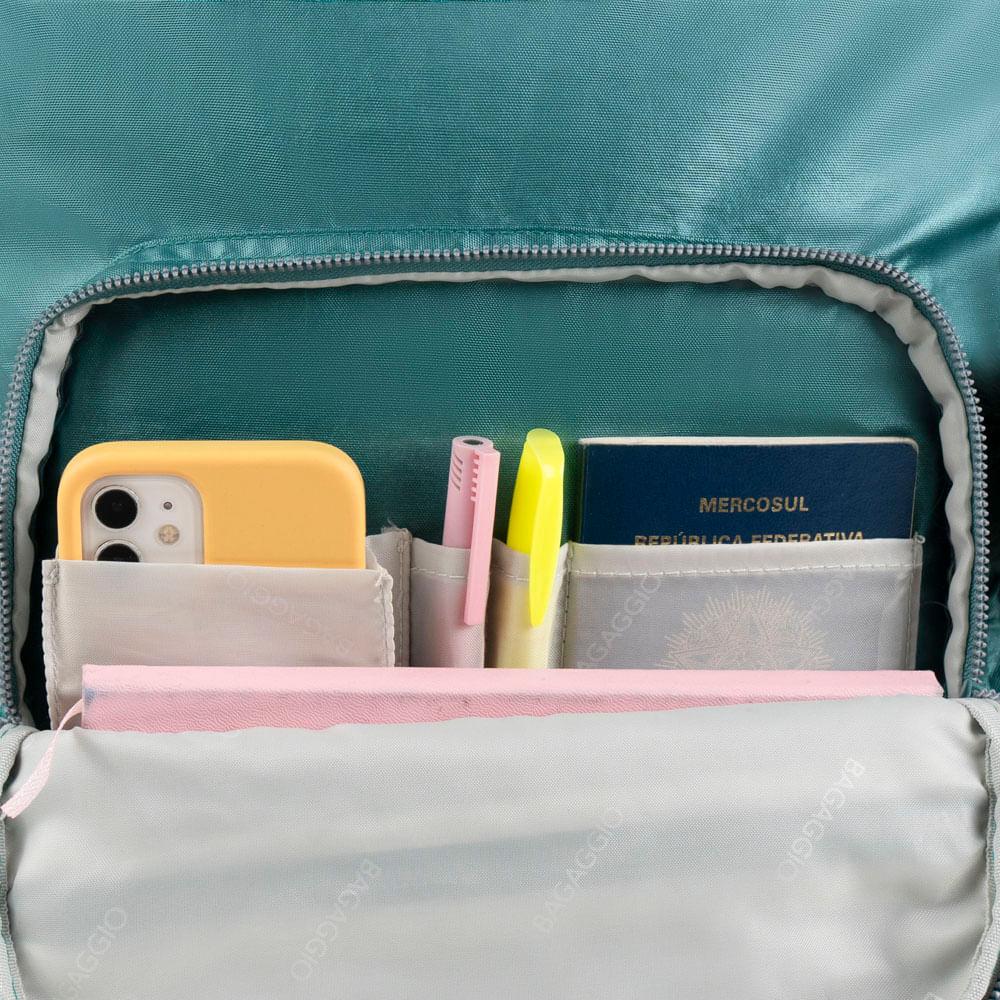 Mochila Perolada Verde Escuro Bagaggio Estilo e praticidade em uma só mochila! Com acabamento perolado moderno, a mochila oferece amplo espaço interno, bolsos funcionais (inclusive para garrafinha) e detalhe charmoso com pompom Material: PoliésterTamanho: 43,2 x 31 x 14 CmPeso: Mochila: 0,520 KgCapacidade: 18,7Garantia: 90 diasFaixa etária: Juvenil (12+ anos)Outros atributos: - Tag de Identificação- Um bolso frontal pequeno.- Alças nas costas acolchoadas. - Chaveiro com pompom.. - Bolso lateral para garrafa.