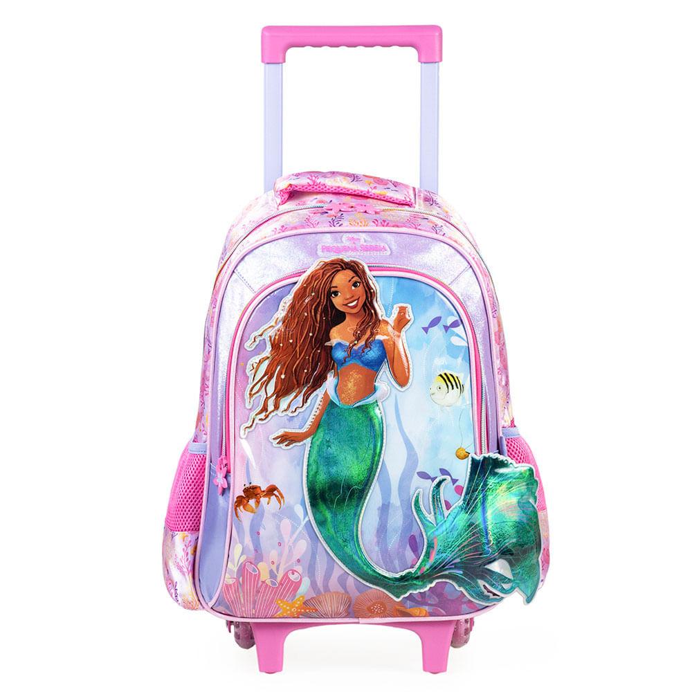 Mochila Escolar Infantil Com Rodinhas Feminina Ariel Premium Rosa Escuro