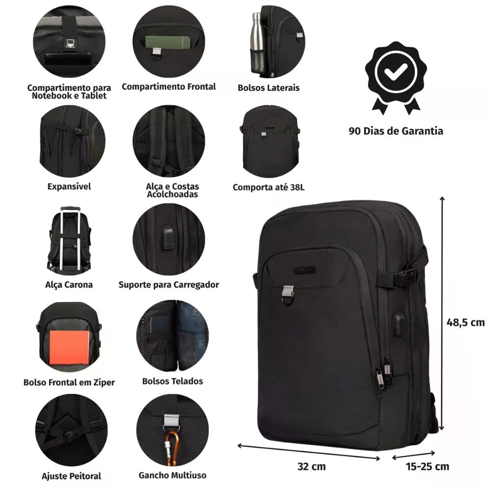 Mochila Masculina Grande para viagem Expansivel Voyage Preta