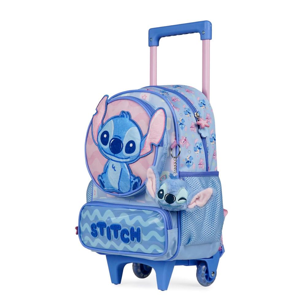 Mochila de Rodinha Feminina Infantil Stitch Baby Azul Clara