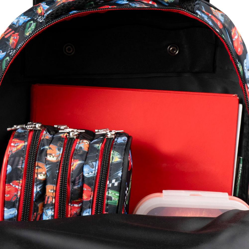 A Mochila de Rodinhas Masculina Carros Vermelha foi criada para o fã do Relâmpago McQueen que quer levar a magia do filme para a rotina escolar. Com 2 rodas resistentes, bolso frontal com aplique 3D do personagem com LED no farol e três compartimentos bem distribuídos, ela combina diversão, espaço interno e praticidade para o dia a dia na escola.As estampas oficiais Disney Pixar e os detalhes que remetem às corridas fazem desta mochila uma escolha que deixa qualquer pequeno apaixonado por velocidade ainda mais empolgado para estudar.Organização e Espaço InternoO modelo conta com 3 compartimentos, garantindo espaço para livros, cadernos, estojo, agenda e acessórios. O bolso frontal com aplique 3D com LED não apenas chama atenção como também funciona como um espaço prático para itens menores.Os bolsos laterais em formato de roda acrescentam personalidade e aumentam a capacidade de organização, deixando tudo visível e acessível.Conforto no Dia a DiaA mochila pode ser usada tanto nas costas quanto acionando o puxador retrátil, ideal para evitar peso excessivo. As alças acolchoadas oferecem mais conforto quando utilizadas nos ombros, e o painel traseiro reforçado traz mais estabilidade.As rodas de alta resistência facilitam a locomoção em corredores e calçadas, tornando a mochila perfeita para crianças em fase escolar.Design Exclusivo dos CarrosO grande destaque está no visual: o painel frontal com o rosto do McQueen, o LED no farol, os detalhes texturizados e os bolsos laterais em forma de pneu, que transformam a mochila em um item único dentro da coleção. O acabamento é vibrante, resistente e pensado para acompanhar o ritmo do dia a dia escolar com estilo.Durabilidade e MateriaisA estrutura externa é feita com materiais reforçados e acabamento especial, garantindo que a mochila suporte uso intenso durante o ano letivo. O puxador resistente, as costuras reforçadas e a base rígida ajudam a aumentar a vida útil do produto — algo essencial para quem usa mochila todos os dias.FAQA mochila acende mesmo?Sim! O aplique 3D frontal tem LED no farol, ativado pelo toque.Ela cabe bastante material escolar?Sim. Os 3 compartimentos permitem levar livros, cadernos grandes, estojo, agenda e lanche separado.As rodas são resistentes?Sim — são rodas firmes, próprias para rotina escolar e superfícies irregulares.A mochila pode ser usada nas costas?Sim, possui alças acolchoadas, garantindo conforto quando usada como mochila tradicional.O puxador é resistente?Sim. O modelo conta com puxador retrátil reforçado, ideal para uso diário.Especificações: Material: PoliésterTamanho: 41 x 29 x 15 cmPeso: Mochila: 1,15kgCapacidade: 17,8LGarantia: 90 diasFaixa etária: Infantil ( 3 a 8 anos)Outros atributos: - Tag de Identificação- Zíper Personalizado.- Alças nas costas personalizadas. -Frontal com aplique 3D do personagem com LED no farol. - Rodinha de silicone.- Bolso lateral para garrafa.