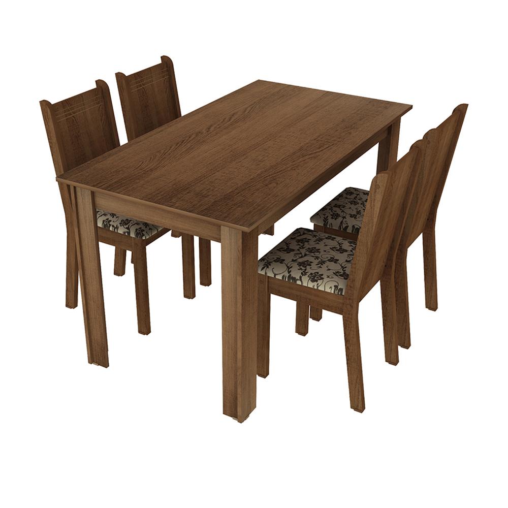 Conjunto Sala de Jantar Rosie Madesa Mesa Tampo de Madeira com 4 Cadeiras - Rustic/Bege Marrom