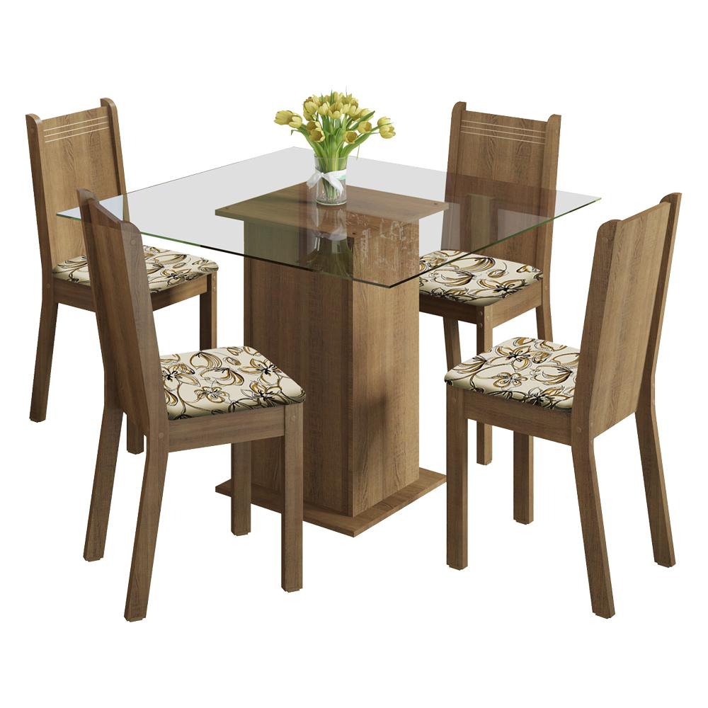 Conjunto Sala de Jantar Madesa Magda Mesa Tampo de Vidro com 4 Cadeiras - Rustic/Lírio Bege