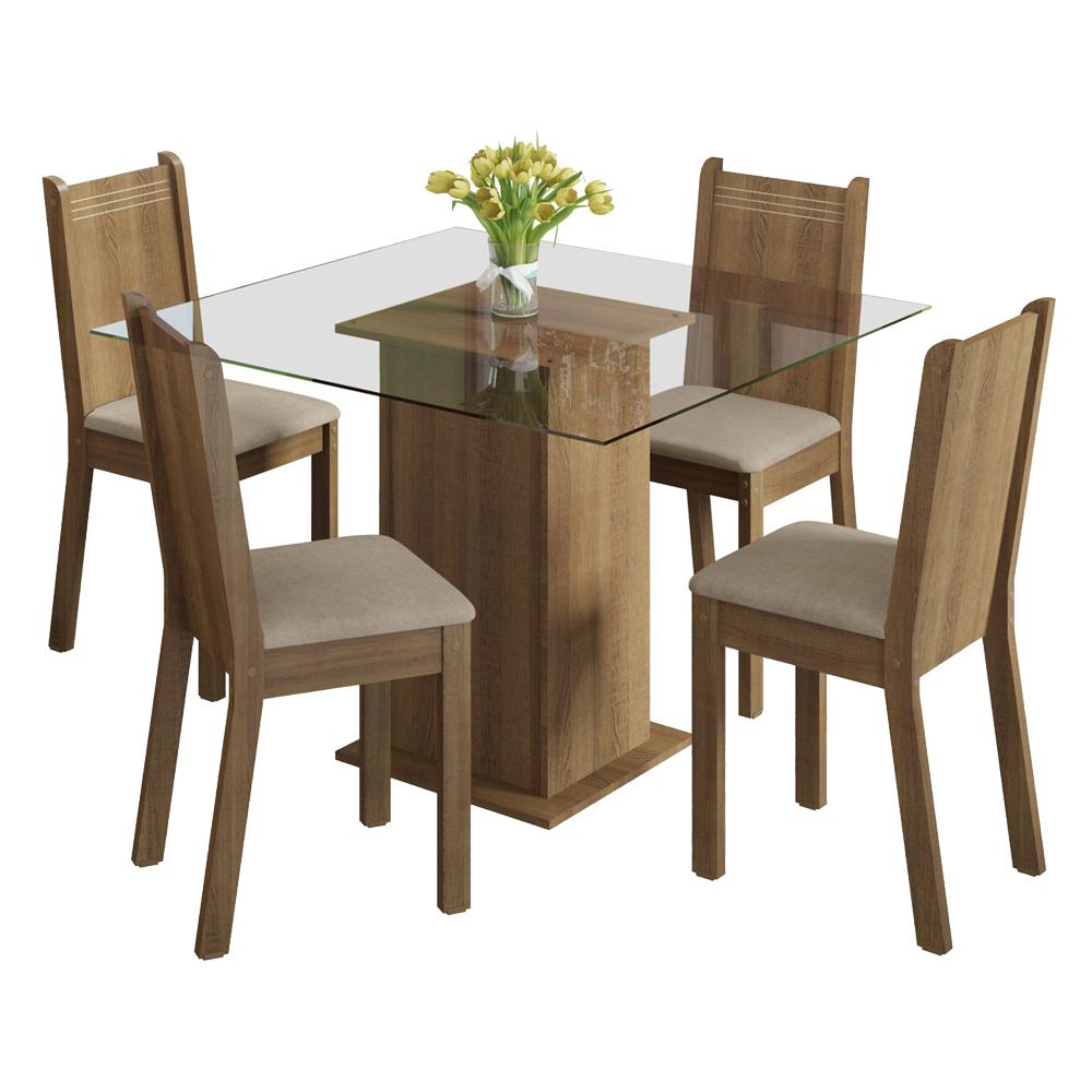 Conjunto Sala de Jantar Magda Madesa Mesa Tampo de Vidro com 4 Cadeiras