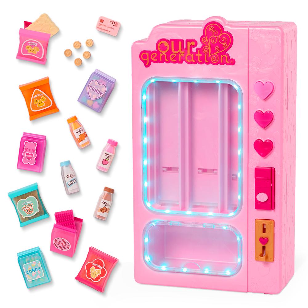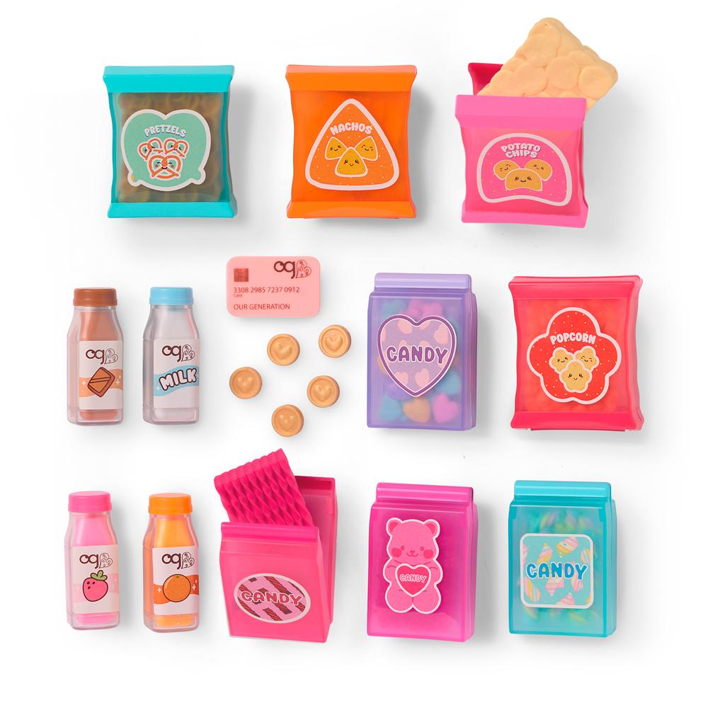 Transforme a brincadeira em uma deliciosa diversão com a Máquina de Lanches Our Generation! Super realista e cheia de detalhes, ela vem com 12 opções de lanchinhos, 1 cartão de crédito e 5 moedas para tornar a experiência ainda mais divertida. Ideal para complementar o universo das bonecas Our Generation, essa charmosa Máquina de Lanches estimula a imaginação com cenários de compra e venda, lanchinhos saborosos e muita interação. Compatível com bonecas de 46 cm e acessórios da linha.