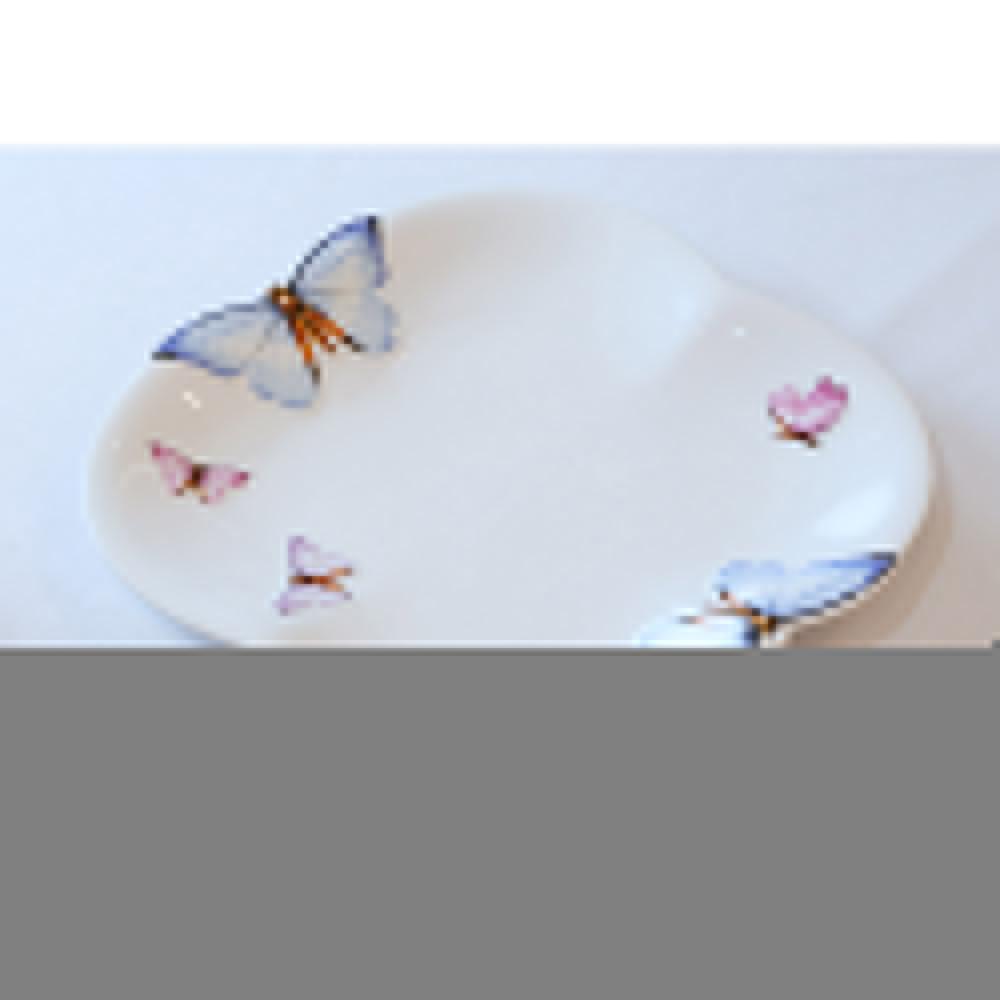 6 Pratos Rasos Wolff Borboletas de Porcelana Branco 24cm