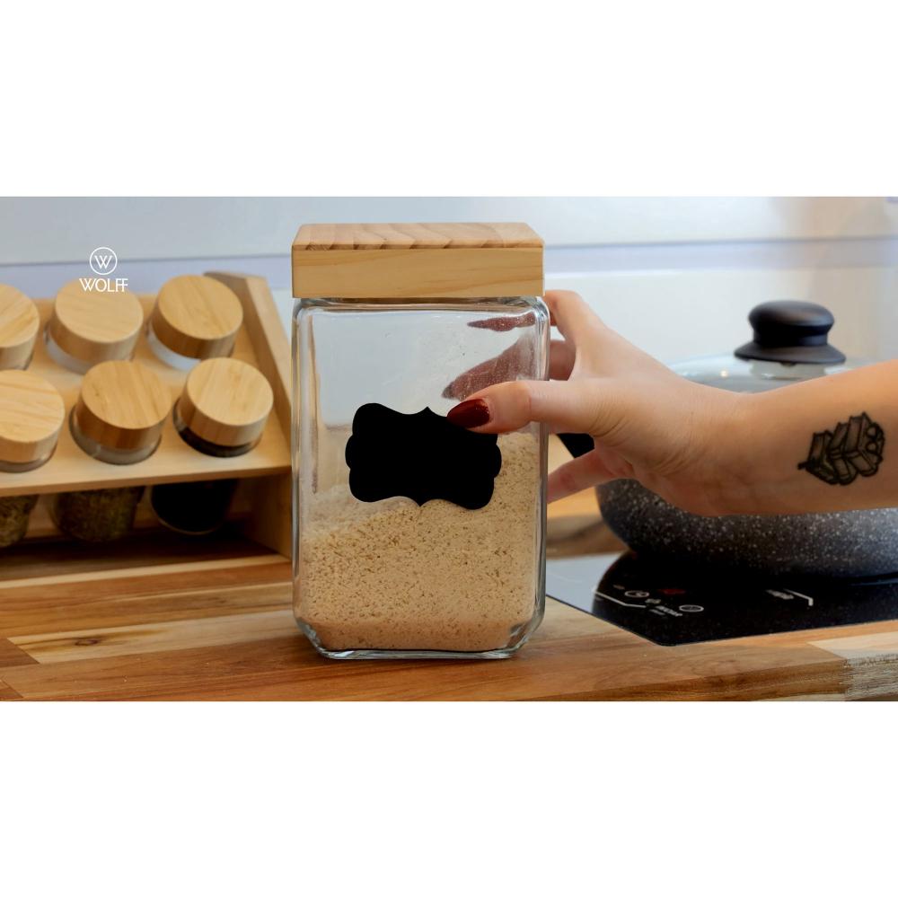 Porta Mantimento de Vidro com Tampa de Pinus e Adesivo 1,7L