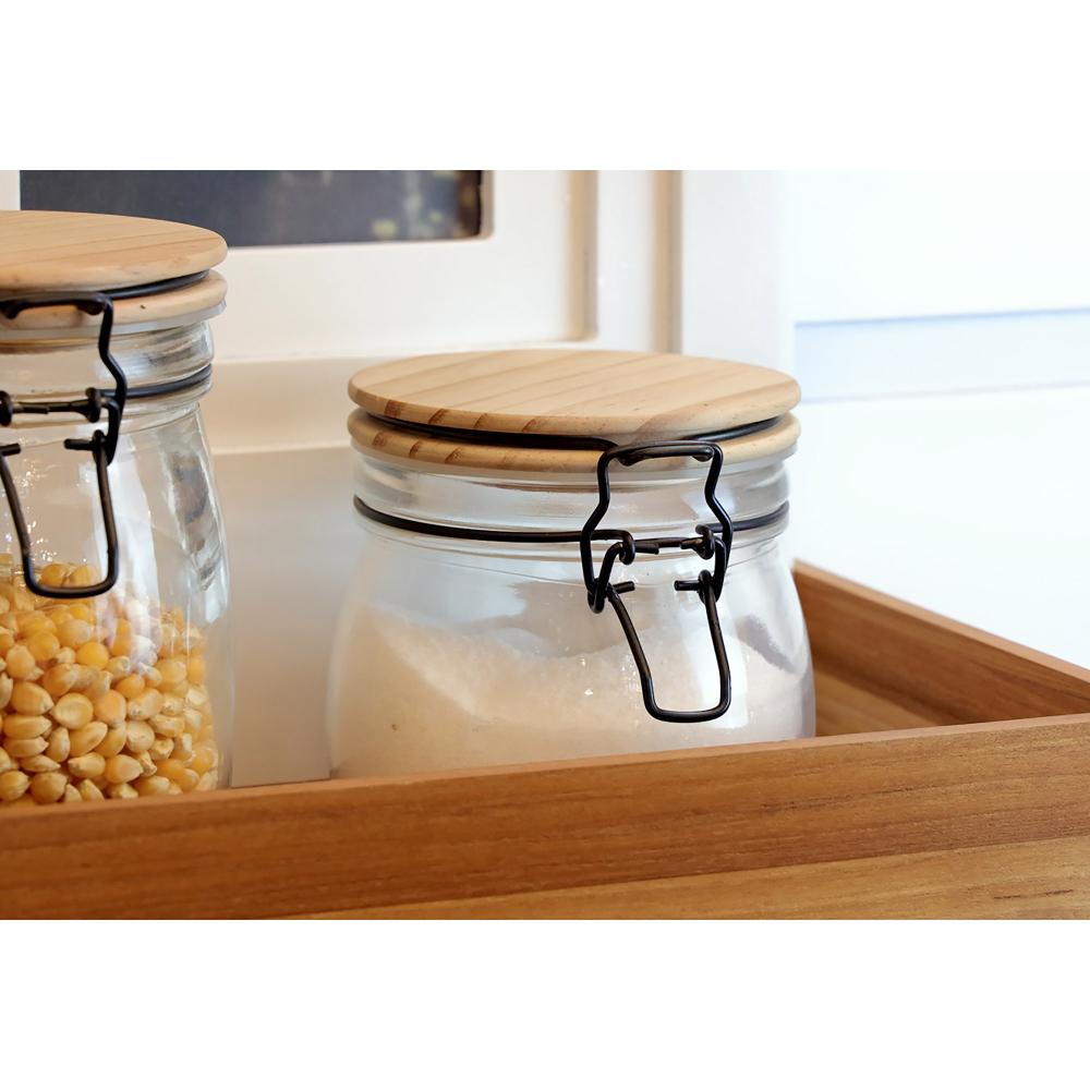 Porta Mantimento de Vidro com Tampa Hermética de Bambu 600ml