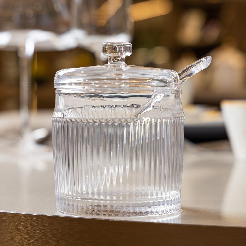 Açucareiro com Colher e Tampa Lines Wolff 10cm x 7,5cm Vidro