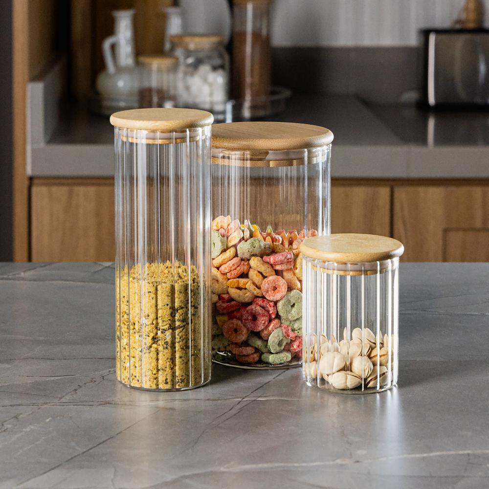 Porta Mantimento Wolff Tampa Bambu Canelado 400ml Vidro