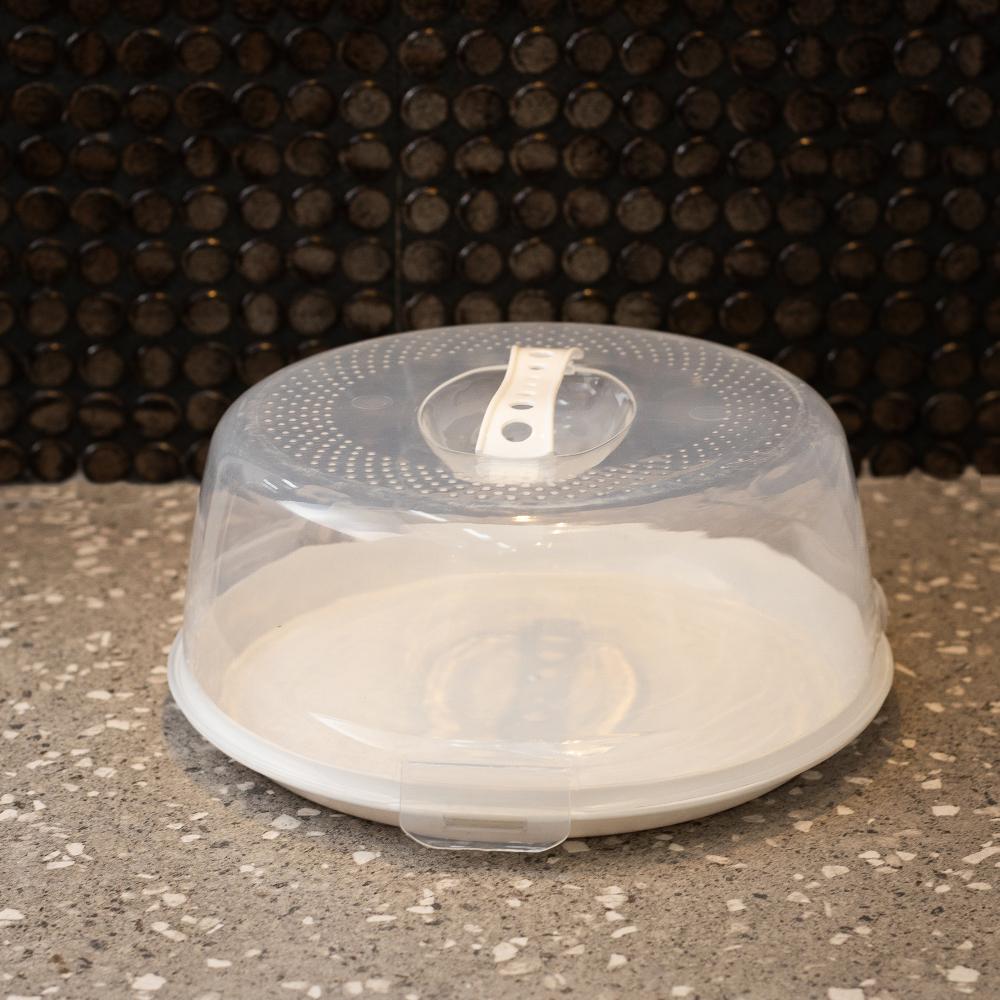 Prato para Bolo Lyor de Plástico com Tampa e Alça Branco