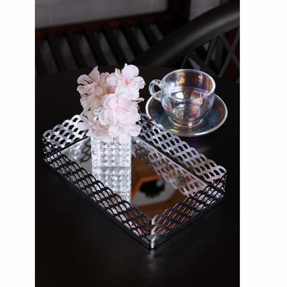 Bandeja Lyor Arles de Metal com Espelho Prateada 21cm x 13cm