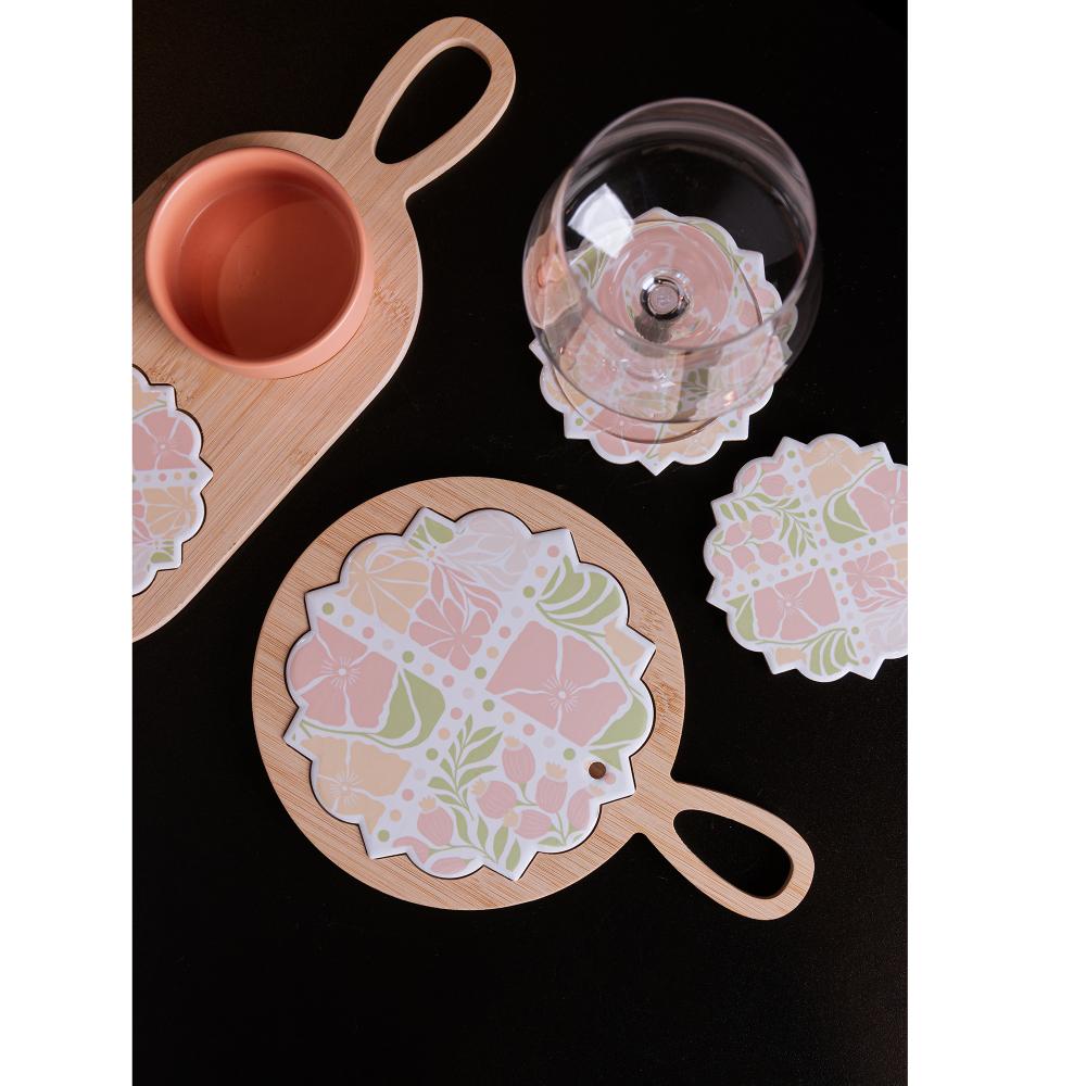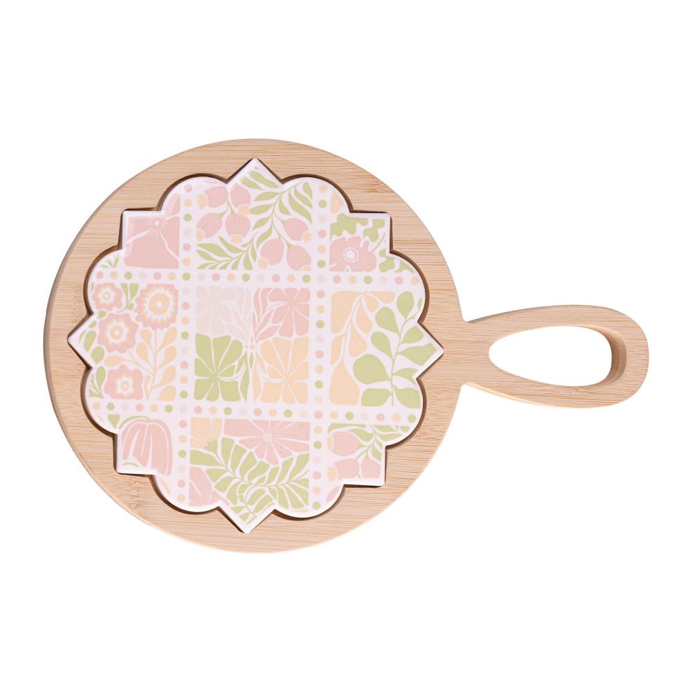 2 Peças Tábua com Bandeja Floral 25cm x 18cm x 1cm Bambu