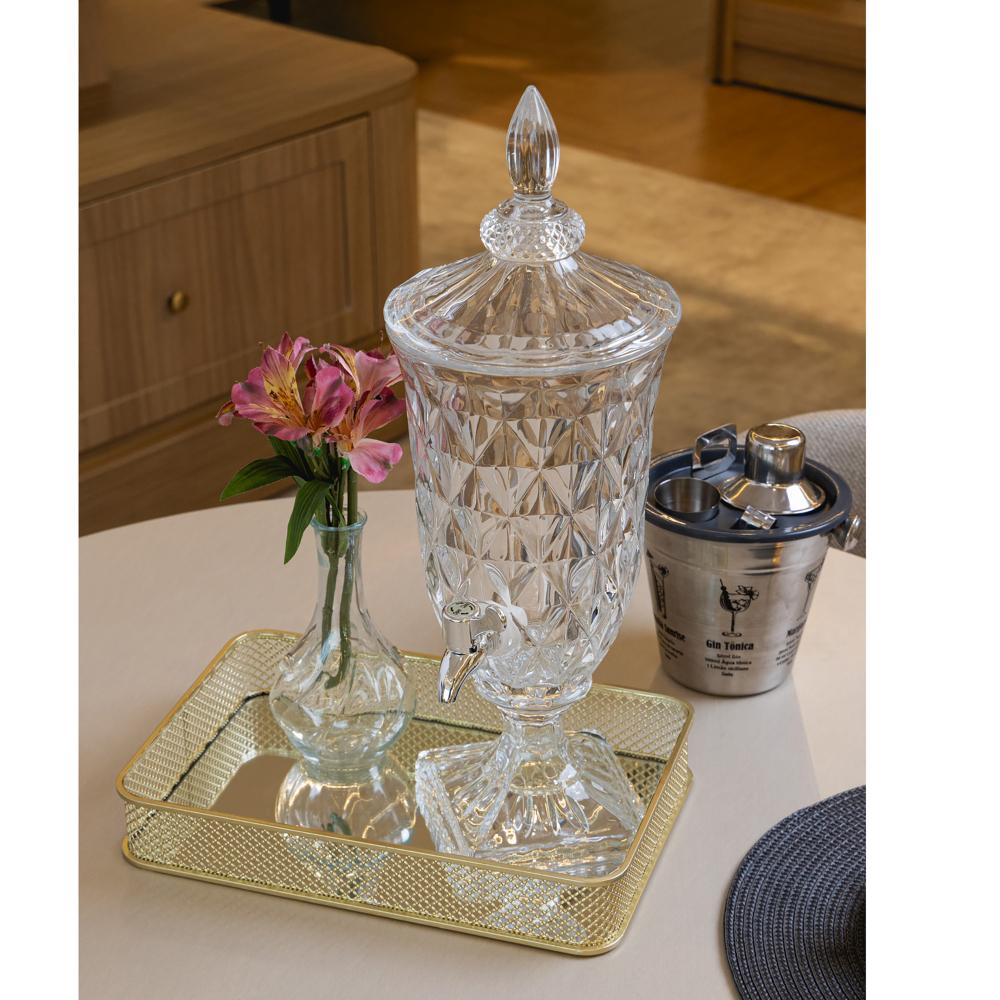 Suqueira Diamond 2L Cristal LyorApresentamos Suqueira Diamond 2L Cristal da Lyor, uma peça deslumbrante que combina elegância e consciência ambiental. Com seu design sofisticado e capacidade de 2 litros, esta suqueira é perfeita para servir suas bebidas favoritas de maneira charmosa e sustentável.Cristal de Alta QualidadeFabricada em cristal , a suqueira destaca-se pela transparência brilhante, adicionando um toque de sofisticação à sua mesa.Design Exclusivo DiamondCom um design elegante e moderno, a suqueira Diamond é uma peça de destaque, complementando a decoração da sua mesa.Capacidade Generosa de 2 LitrosCom uma capacidade de 2 litros, a suqueira é ideal para servir sucos, água aromatizada, chás gelados e outras bebidas refrescantes em eventos especiais ou no dia a dia.Torneira Prática para ServirEquipada com uma torneira prática, a suqueira permite servir as bebidas de forma fácil e sem derrames, garantindo uma experiência de consumo conveniente.Base ResistenteA base resistente da suqueira proporciona estabilidade, evitando acidentes e garantindo que a suqueira permaneça firme durante o serviço.Fácil Limpeza e ManutençãoO cristal ecológico é fácil de limpar, permitindo que a suqueira esteja sempre pronta para ser utilizada com praticidade.Encante seus convidados e sirva suas bebidas com requinte utilizando a Suqueira de Cristal Diamond da Lyor. Seja em festas, reuniões familiares ou momentos descontraídos, esta suqueira é a escolha perfeita para quem busca aliar estilo e sustentabilidade.Lyor - Soluções completas para o seu Lar.Contém: 1 DispenserLava Louça: NãoMicroondas: NãoForno: NãoFogão: NãoFreezer: NãoMedidas Produto: Altura 46,00cm x Largura 16,00cm x Comprimento 16,00cmPeso: 3,25KgLavar com detergente neutro, esponja macia e secar imediatamente. não utilizar produtos químicos.