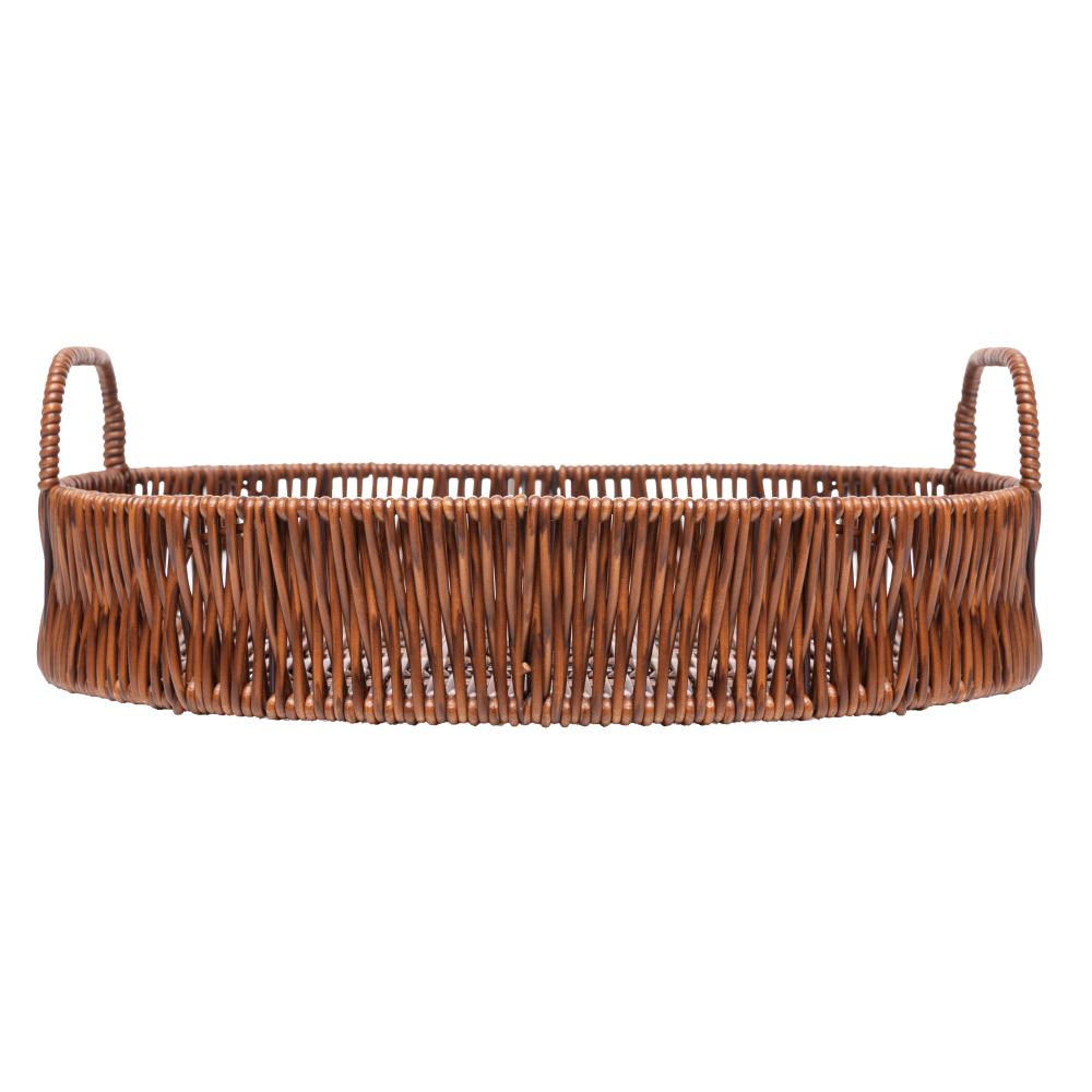 Bandeja Redonda com Alça Rattan Lyor 30,5cm x 10cm Plástico