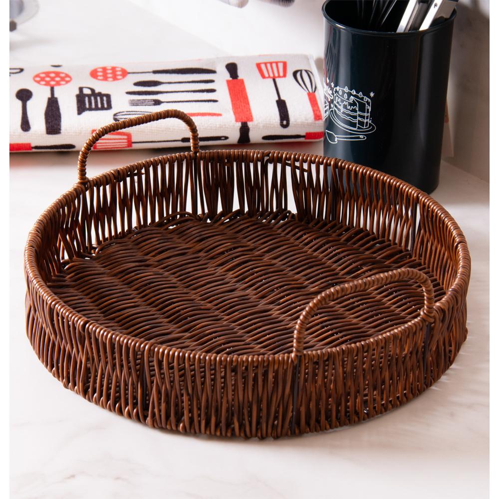Bandeja Redonda com Alça Rattan Lyor 26,5cm x 10cm Plástico