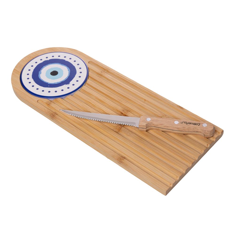 3 Peças para Servir Lyor Greek 32,5 x 13,5 x 4,2 cm BambuConjunto 3 Peças para Servir Greek em Bambu – LyorConjunto 3 Peças para Servir Greek em Bambu – LyorSirva seus pães e petiscos com mais praticidade e um toque de estilo com o Conjunto 3 Peças para Servir Greek em Bambu. Funcional e versátil, ele é ideal para deixar qualquer ocasião mais especial, seja um café da manhã, um lanche em família ou um encontro com amigos.Design CharmosoA tábua possui uma estampa diferenciada e detalhes sofisticados, que valorizam a apresentação dos alimentos e combinam com qualquer mesa.Material Resistente e EcológicoFeito em bambu, um material leve, durável e sustentável, esse conjunto une praticidade e preocupação com o meio ambiente.Fácil de Usar e LimparA tábua é ideal para cortar, preparar e servir os alimentos, mantendo tudo organizado com mais praticidade. A faca inclusa facilita o corte de pães e frios, tornando o momento ainda mais especial. Após o uso, basta lavar com água e detergente neutro, evitando deixar as peças submersas para conservar o bambu.Esse conjunto é perfeito para quem busca funcionalidade e estilo na hora de servir.Lyor – Soluções completas para o seu lar.Contém: Conjunto 3 Pecas para Servir Greek 32,5 x 13,5 x 1cm Bambu- LyorMedidas Produto: Altura 2,50cm x Largura 13,00cm x Comprimento 32,50cmPeso: 1,00KgLavar com detergente neutro, esponja macia e secar imediatamente.