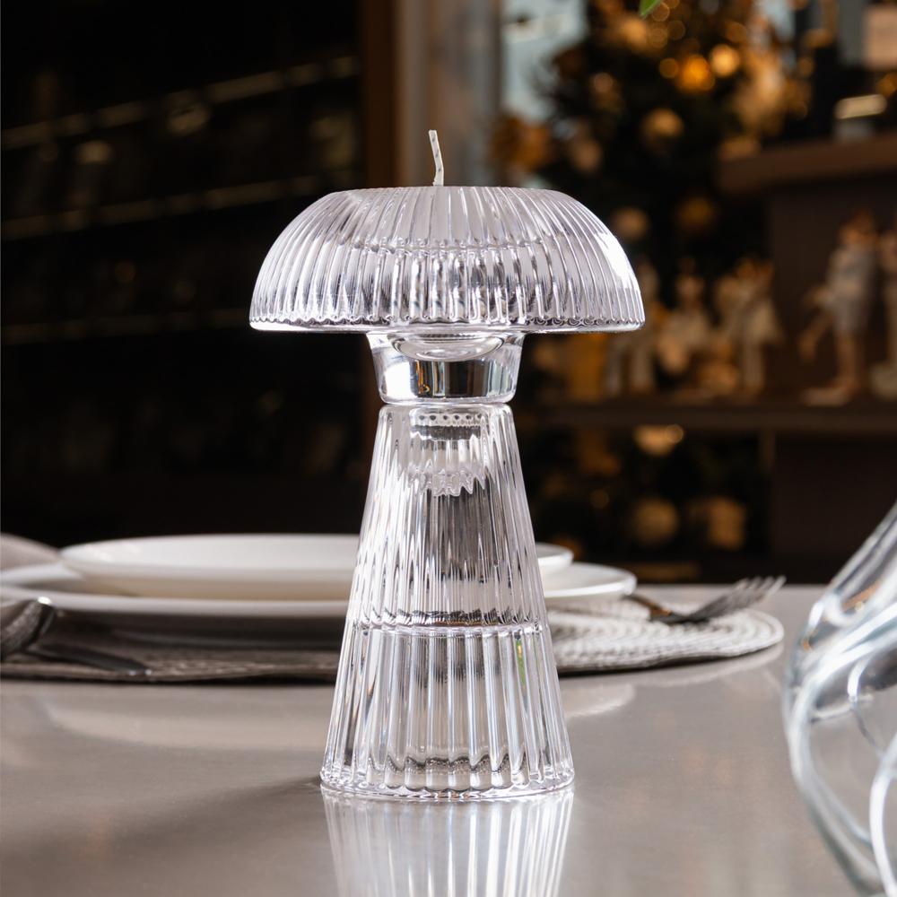 Castiçal Mushroom Lines 10cm x 10cm x 15cm Vidro Lyor