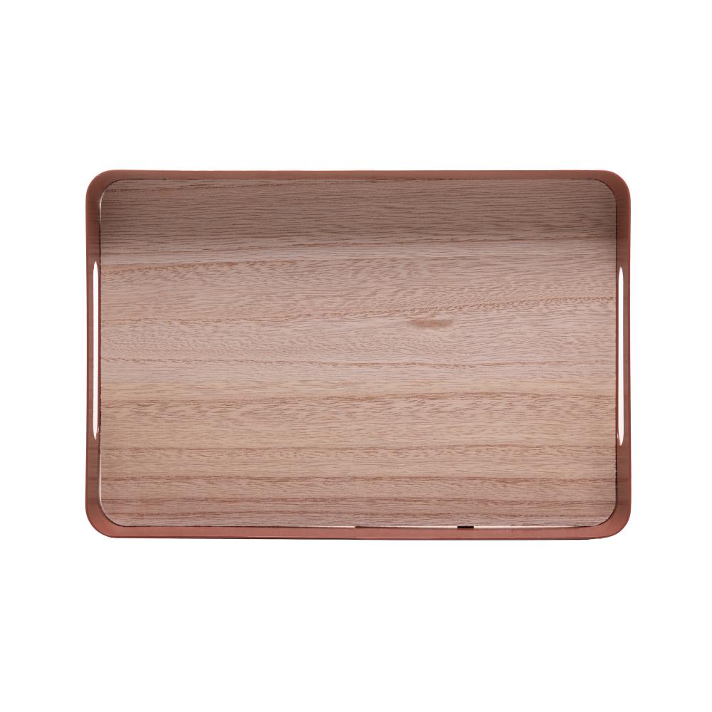 Bandeja Fundo de Madeira Virelli 30 x 20 x 5cm Marrom Metal