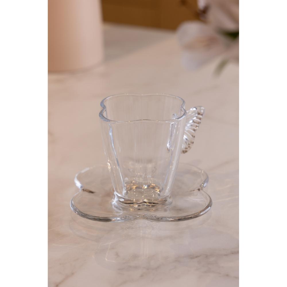 4 Xícaras Wolff de Chá de Vidro com Pires Butterfly