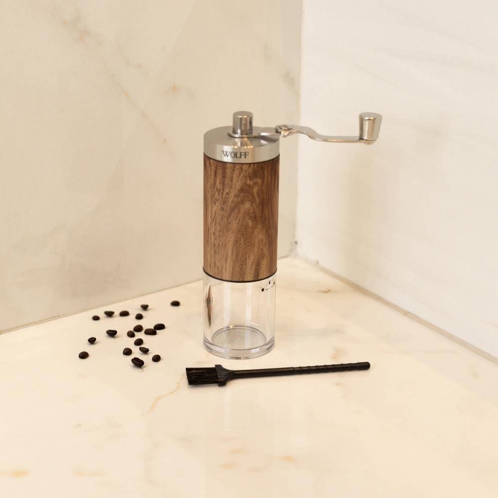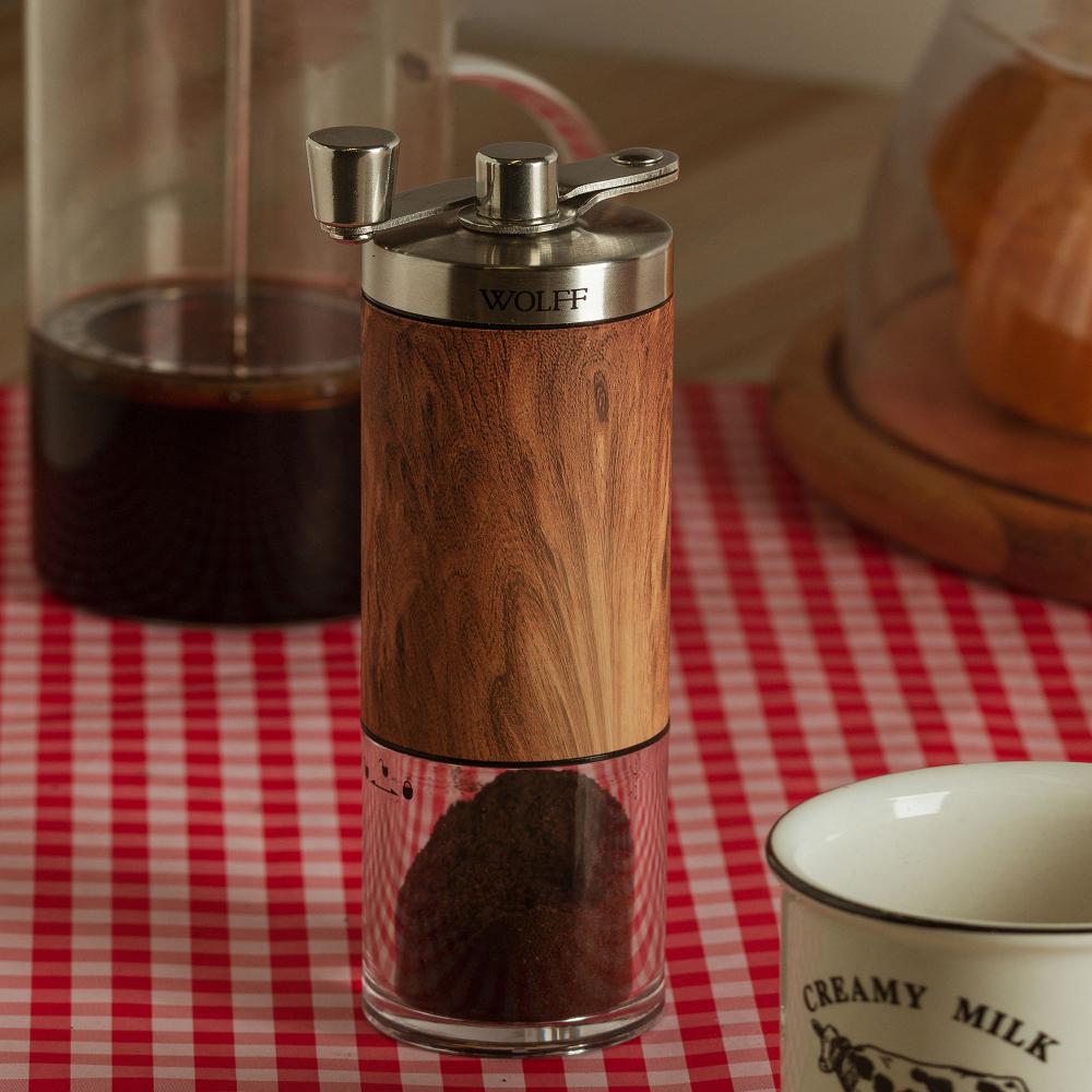 Moedor de Café Wolff de Aço Inox Manual com Estampa Madeira