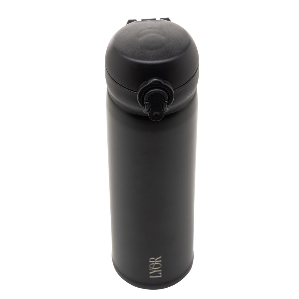 Garrafa Térmica Lyor em Aço Inox Preta com Tampa Flip 410ml