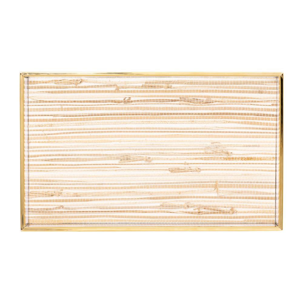 Bandeja Lyor de Metal Dourada com Palha 15cm x 25cm x 3cm