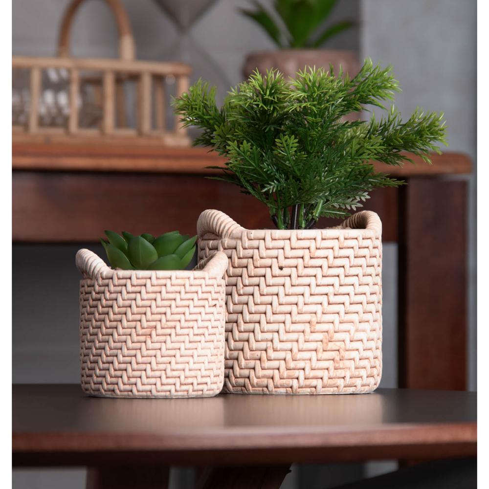 Cachepot Wolff de Cerâmica com Suculenta Palha 7,5cm x 7,5cm