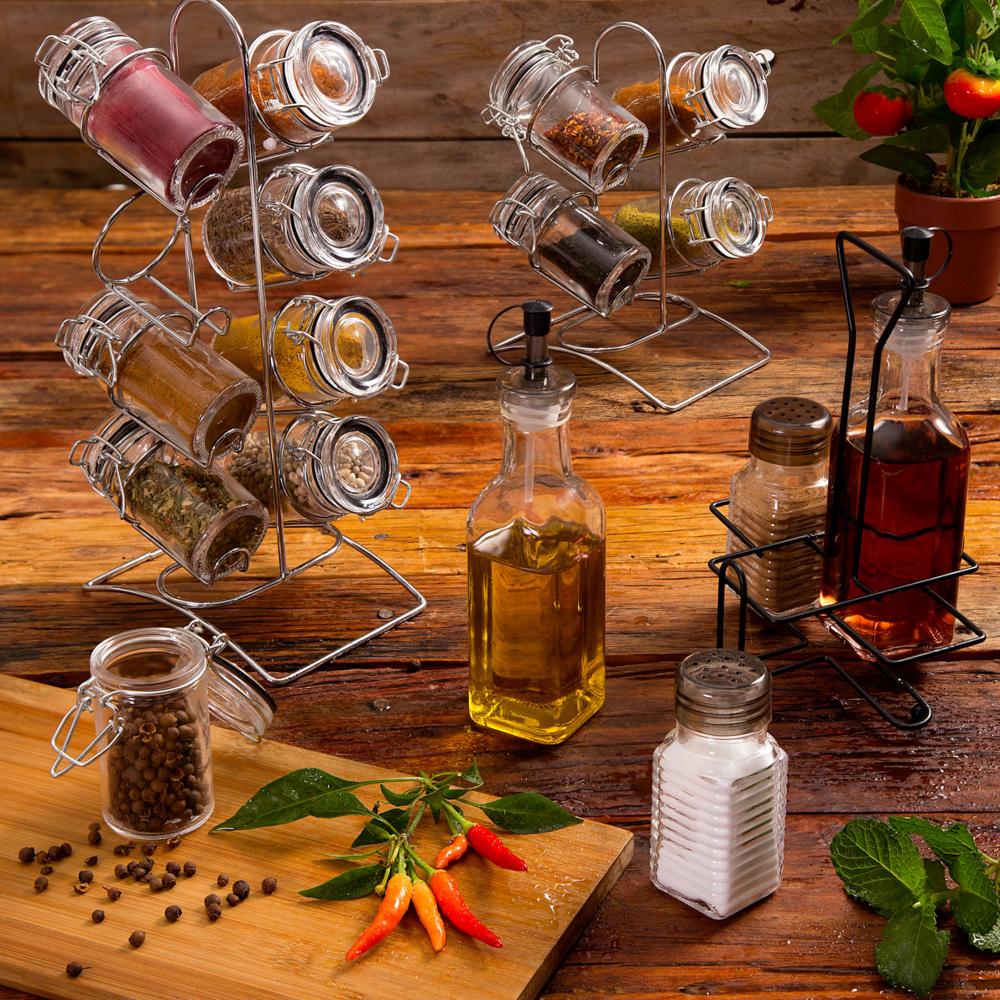 8 Porta Temperos Lyor de Vidro Prata