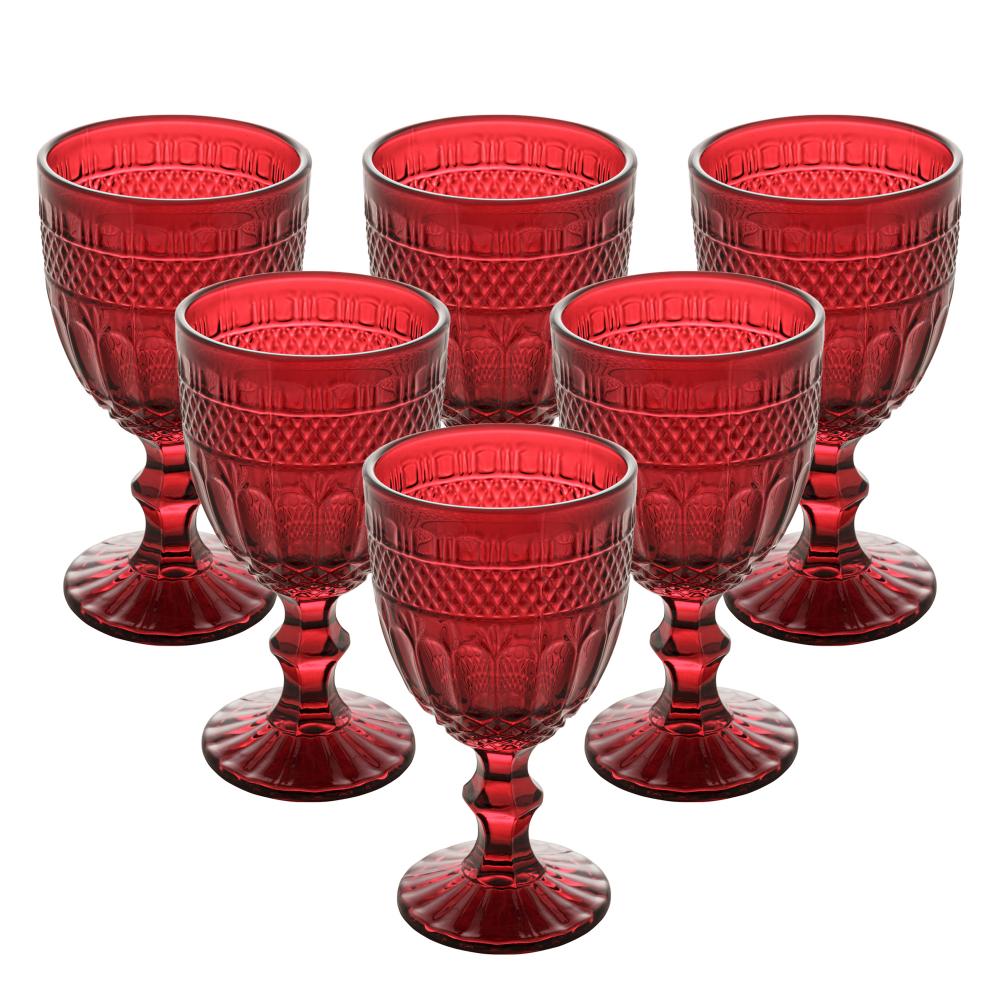 6 Taças de Água Brand 320ml Vermelho Vidro Wolff