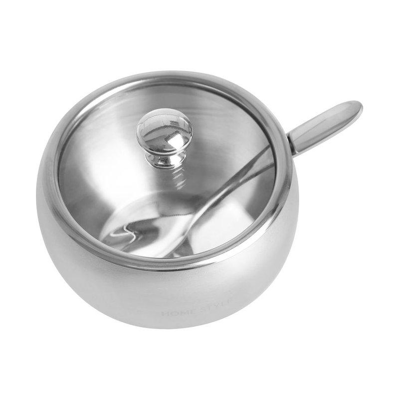 O Açucareiro Domo Home Style é produzido em aço inox, com capacidade útil de 230 g, próprio para armazenar todos os tipos de açúcares ou adoçantes em pó de sua preferência. É uma peça clássica, com formato arredondado, com puxador na tampa; o açucareiro Domo é uma peça clássica. Contém - 01 açucareiro com tampa; - 01 colher de açúcar em aço inox; Cuidados Não lave com escovas abrasivas, mantenha longe de fontes de calor. Prefira lavar manualmente com esponja macia e detergente neutro. Seque logo após a lavagem. Dica: como armazenar o açúcar? Armazene o açúcar em local seco e mantenha o açucareiro bem vedado, longe de umidade, formigas e insetos. Não guarde na geladeira, a umidade estraga o alimento. O Açucareiro Domo foi desenvolvido pela marca exclusiva Home Style da Camicado, que transforma cada ambiente da sua casa, oferecendo praticidade, estilo e excelência em cada detalhe. Sinta o prazer de viver bem, no seu tempo e do seu jeito. Descubra os produtos Home Style e viva bem com estilo. Camicado, casa com o seu estilo!