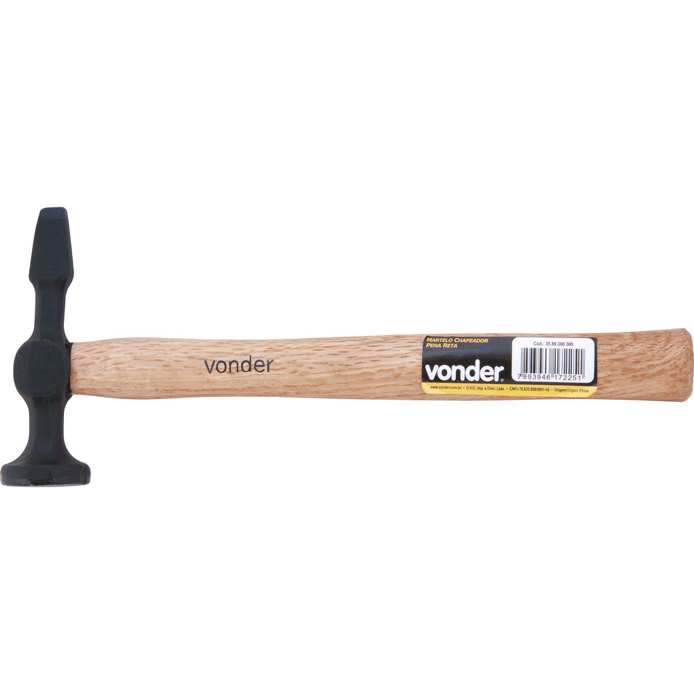 Conteúdo da embalagem1 Martelo chapeadorAplicações e dicas de usoIndicado para funilarias/lanterneiros DETALHES TÉCNICOS Modelo do martelo: Pena reta Comprimento total aproximado do martelo (cabeça + cabo): 280,0 mm Altura da cabeça do martelo: 120,0 mm Medida nominal do martelo: 38,0 mm Largura da ponta quadrada do martelo: 5,0 mm Material do cabo do martelo: Madeira Material da cabeça do martelo: Aço forjado Acabamento da cabeça do martelo: Pintado