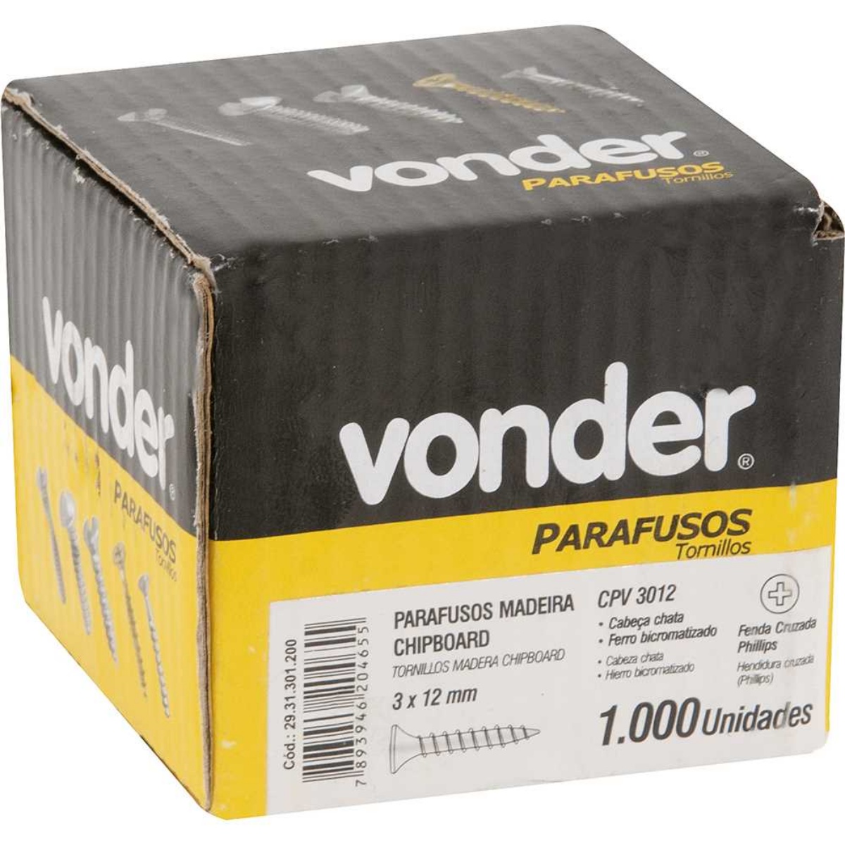 Parafuso Madeira 3,0 x 12 Chipboard Pozidrive 1000 Peças Vonder
