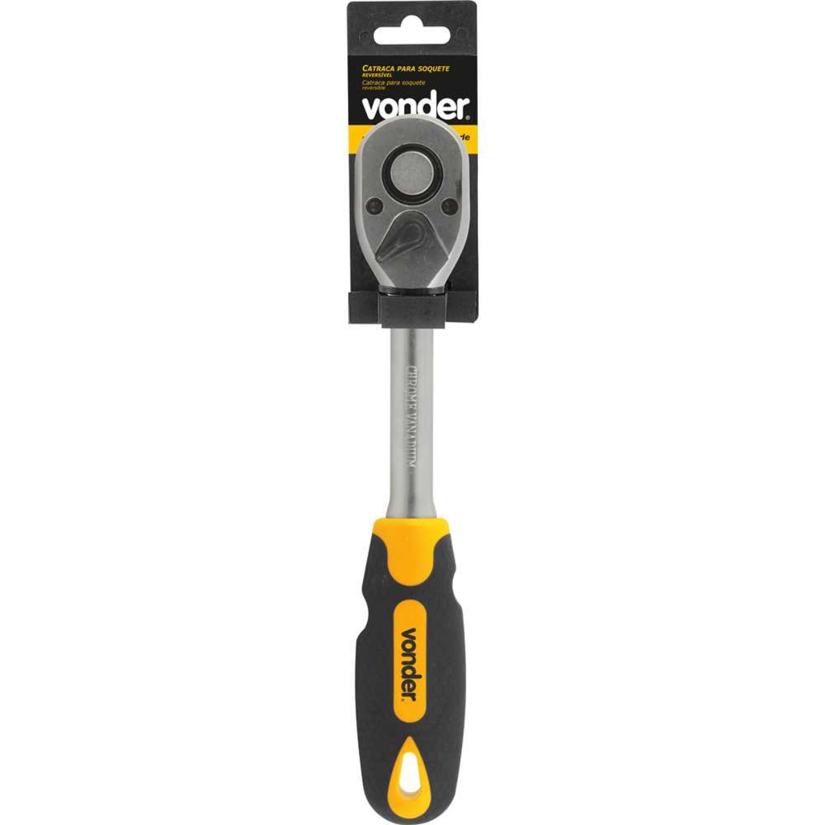 Conteúdo da embalagem1 CatracaAplicações e dicas de usoIndicada para adaptar o soquete para fixação de porcas e parafusosDestaques e diferenciaisProduzida em aço cromo vanádio, proporcionando maior durabilidade DETALHES TÉCNICOS Material da catraca para soquete: Aço cromo vanádio Acabamento da catraca para soquete: Niquelado e cromado Comprimento total da catraca para soquete: 9.15/32" - 240 mm Revestimento do cabo da catraca para soquete: Emborrachado Tipo de reversão da catraca para soquete: Reversível