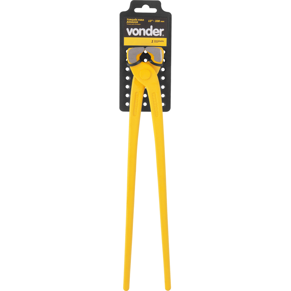 Conteúdo da embalagem1 TorquêsAplicações e dicas de usoIndicado para cortar e torcer arames em amarrações de ferragens na construção civil DETALHES TÉCNICOS Comprimento do torquês: 13" - 330 mm Material do torquês: Aço forjado Cor do torquês: Amarelo Tipo do cabo do torquês: Pintado