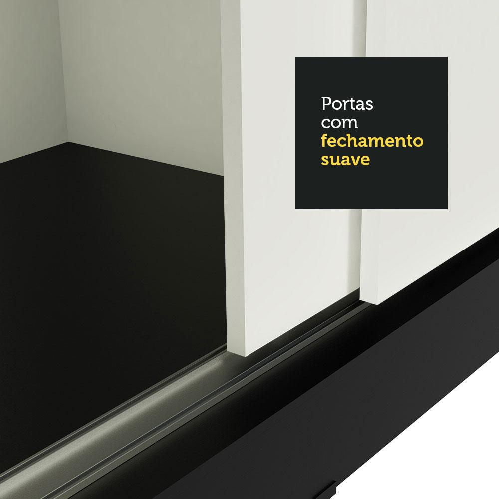 Guarda-Roupa Casal Madesa Austin 4 Portas de Correr de Espelho 3 Gavetas - Preto/Branco