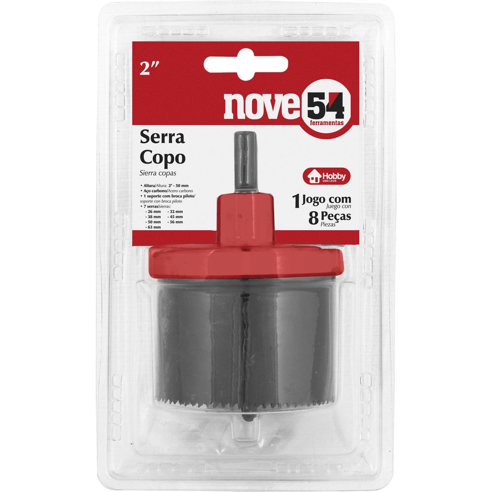 Conteúdo da embalagem1 Jogo de serras copo, sendo: 1 suporte com broca piloto e 7 serras (26 mm, 32 mm, 38 mm, 45 mm, 50 mm, 56 mm e 63 mm)Aplicações e dicas de usoIndicado para chapas finas de madeiras e derivados de até 5 mm. Uso leveDestaques e diferenciaisPermite realizar furos de vários diâmetros com a mesma ferramenta DETALHES TÉCNICOS Número de peças do jogo de serra copo: 07 peças Altura das serras do jogo de serra copo: 2" - 50 mm Material do jogo de serra copo: Aço carbono