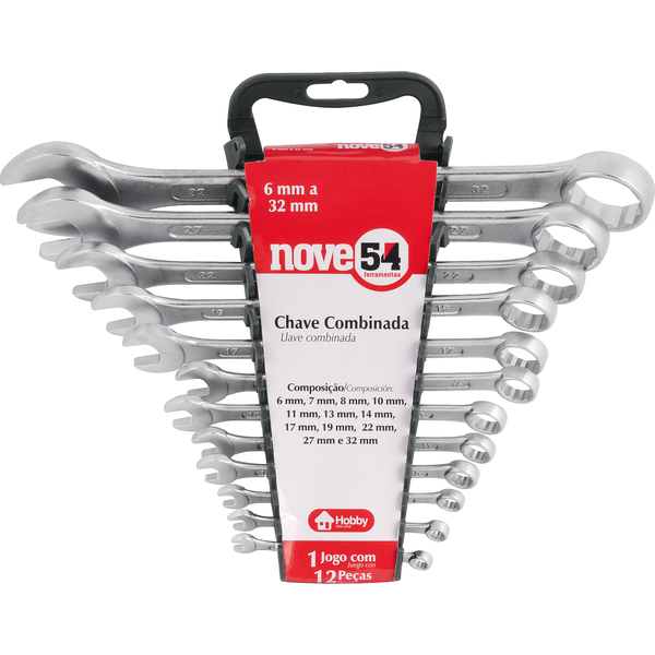 Conteúdo da embalagem1 Jogo de chaves combinadas, composto por um suporte plástico com 12 peças, sendo: 6 mm, 7 mm, 8 mm, 10 mm, 11 mm, 13 mm, 14 mm, 17 mm, 19 mm, 22 mm, 27 mm e 32 mmAplicações e dicas de usoIndicado para apertar e soltar porcas e parafusos sextavados. Nunca utilizar prolongadores sobre as chaves, pois isso aumentará o torque aplicado e diminuirá a vida útil das ferramentas. Uso leve.Destaques e diferenciaisPossui acabamento cromado fosco, proporcionando maior resistência contra oxidação/corrosão. Combina na mesma chave um lado fixa e outro estrela, possibilitando aplicações em locais de difícil acesso. DETALHES TÉCNICOS Material do corpo da chave: Aço carbono Acabamento da Chave: Cromado fosco