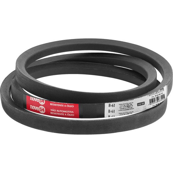 Conteúdo da embalagem1 CorreiaAplicações e dicas de usoIndicada para transmissão de força/velocidade do motor para o equipamento. Utilizada em máquinas industriais em geral, compressores, serras circulares de bancada, furadeiras de bancada e de coluna, betoneiras, entre outros. Não automotiva.Destaques e diferenciaisComposto à base de borracha natural que mantém os cordonéis na posição correta e protege a correia contra danos causados pela compressão. Possui tecido de algodão impregnado com borracha natural que protege os componentes internos da abrasão e do óleo. Conta ainda com fios de fibra sintética que têm como função a transmissão de força. DETALHES TÉCNICOS Referência da correia: B - 61 Perfil da correia: Perfil - B Largura da correia: 17 mm Espessura da correia: 11 mm Comprimento interno da correia: 1549,0 mm