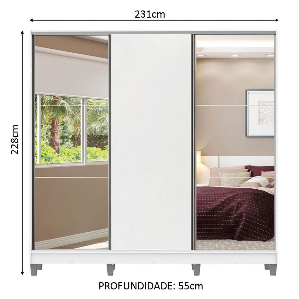 Guarda Roupa Casal 100% MDF Madesa Royale 3 Portas de Correr com Espelho com Pés - Branco